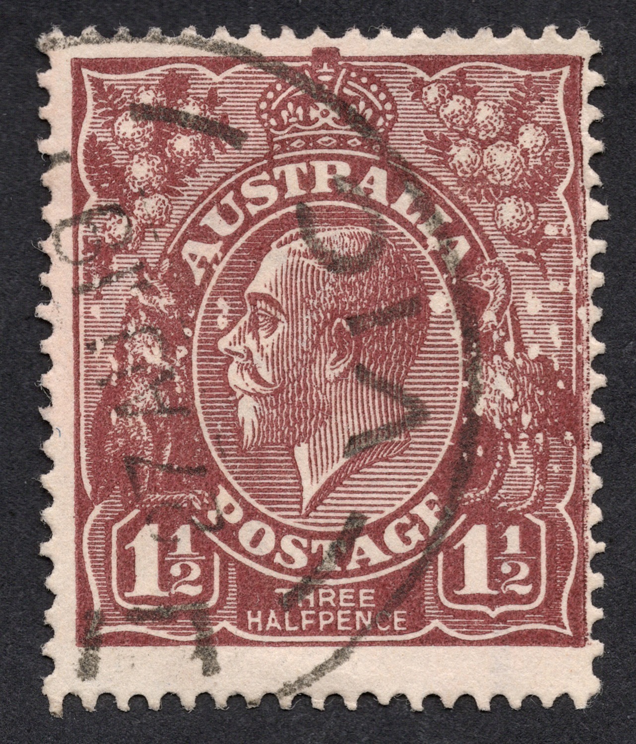 1½d Green, perforated OS, Electro 12 variety "Cracked Electro through leg of Kangaroo" (early state)