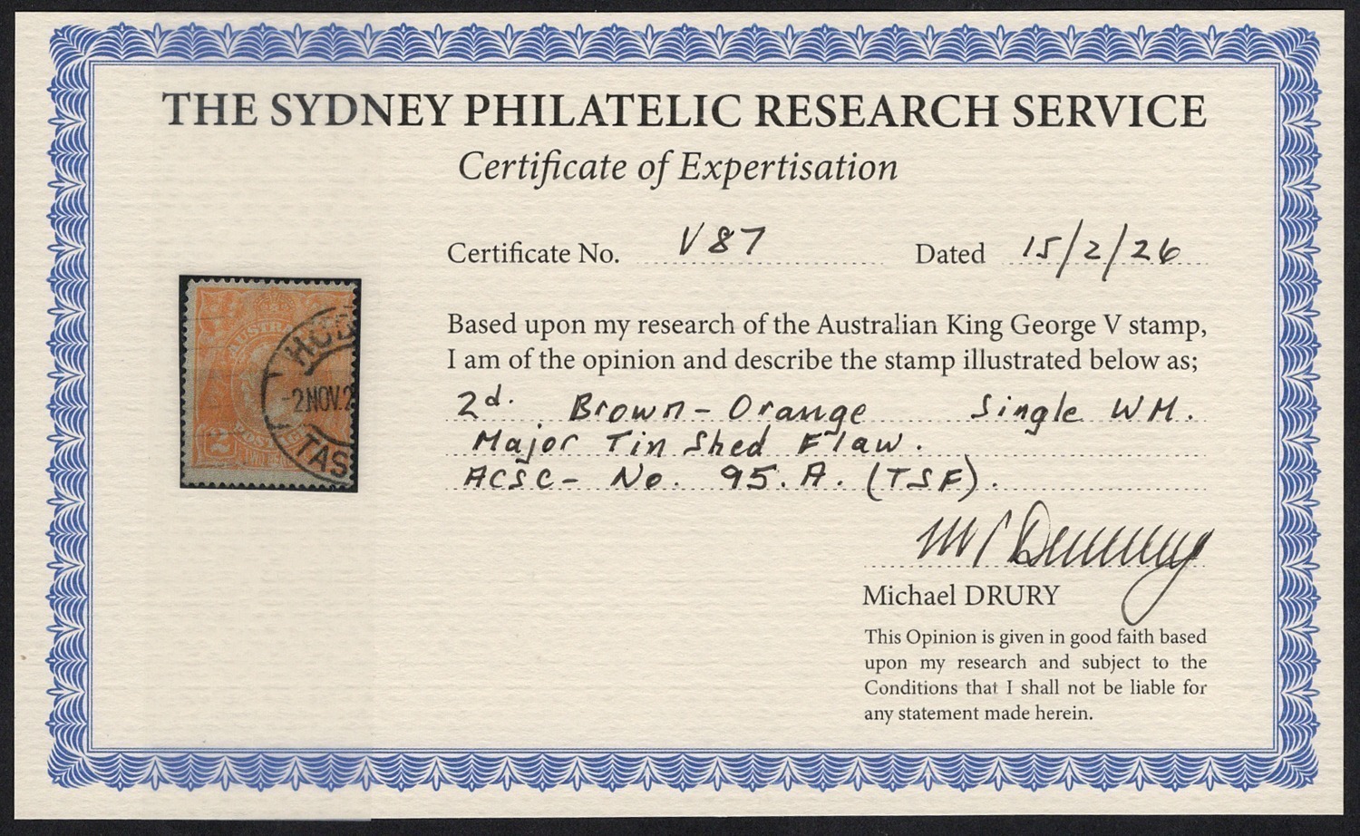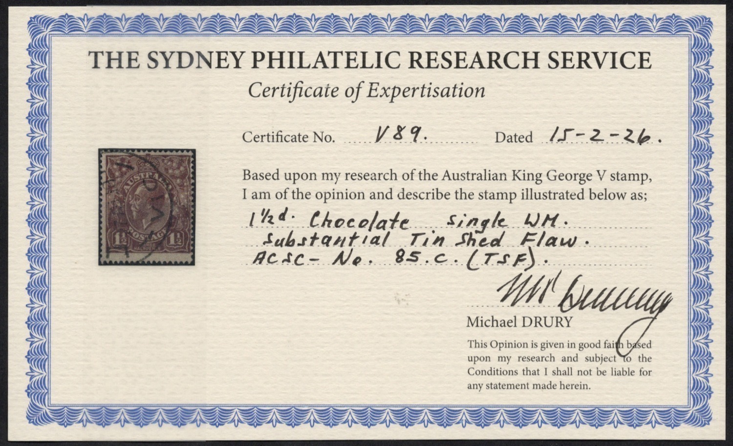 "TIN SHED" FLAWS: A superb group of stamps (1½d Black-brown, 1½d Reddish-brown, & 2d Orange), each