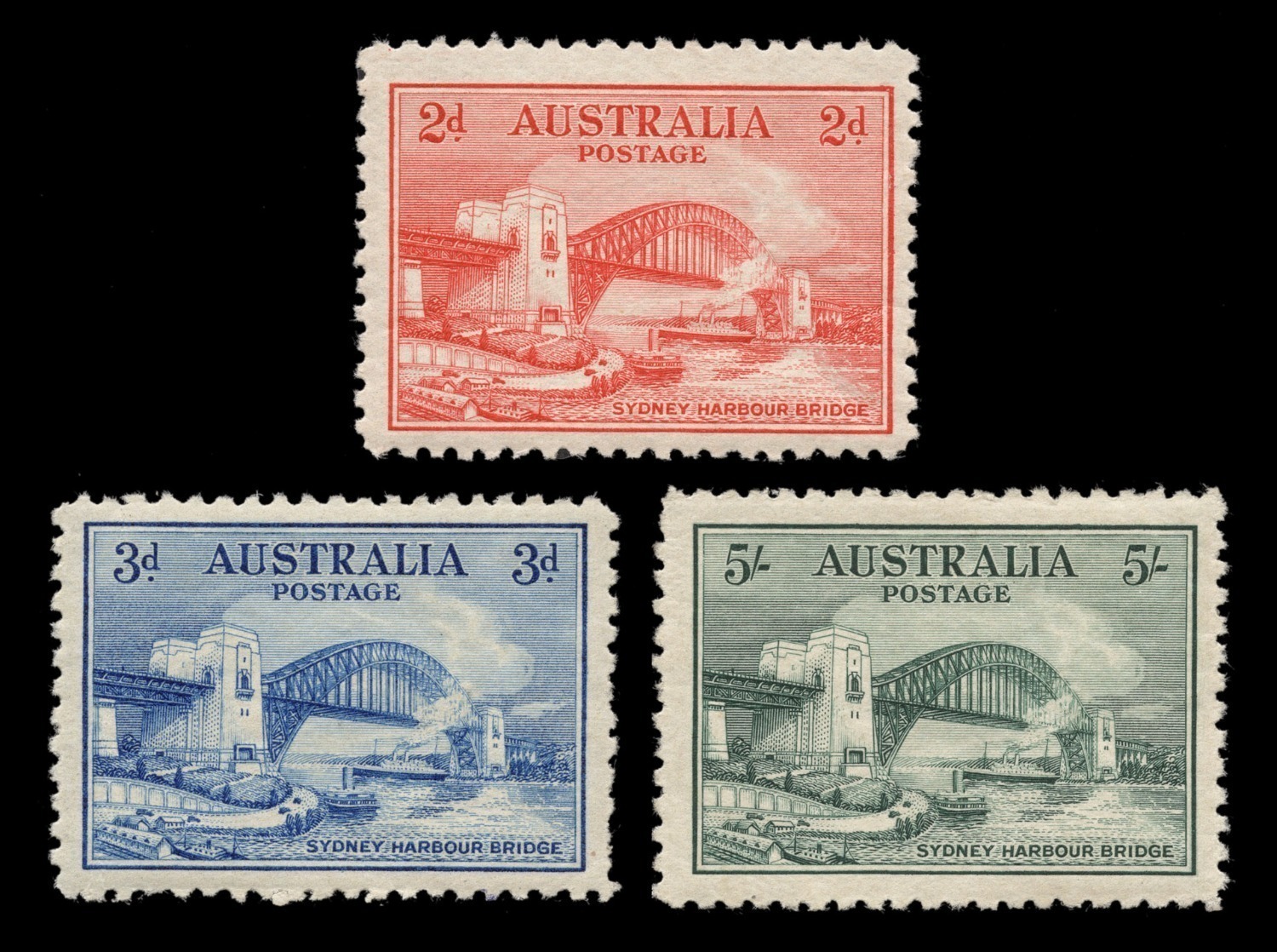 1932 (SG.141-43) 2d - 5/- Sydney Harbour Bridge set, (3) fresh MUH. (Image 1)