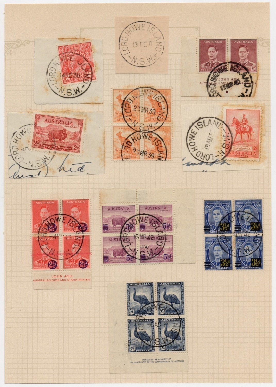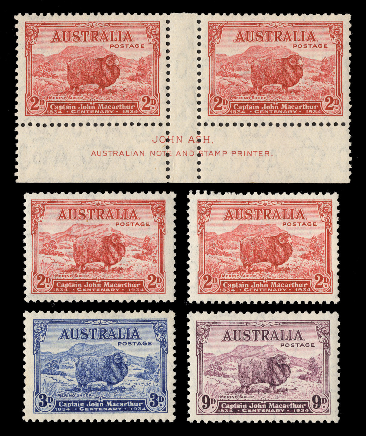 1934 (SG.150-152) John Macarthur set of 4 (incl. both 2d printings) together with a 2d Dark Hills Imprint pair, all fresh MUH.