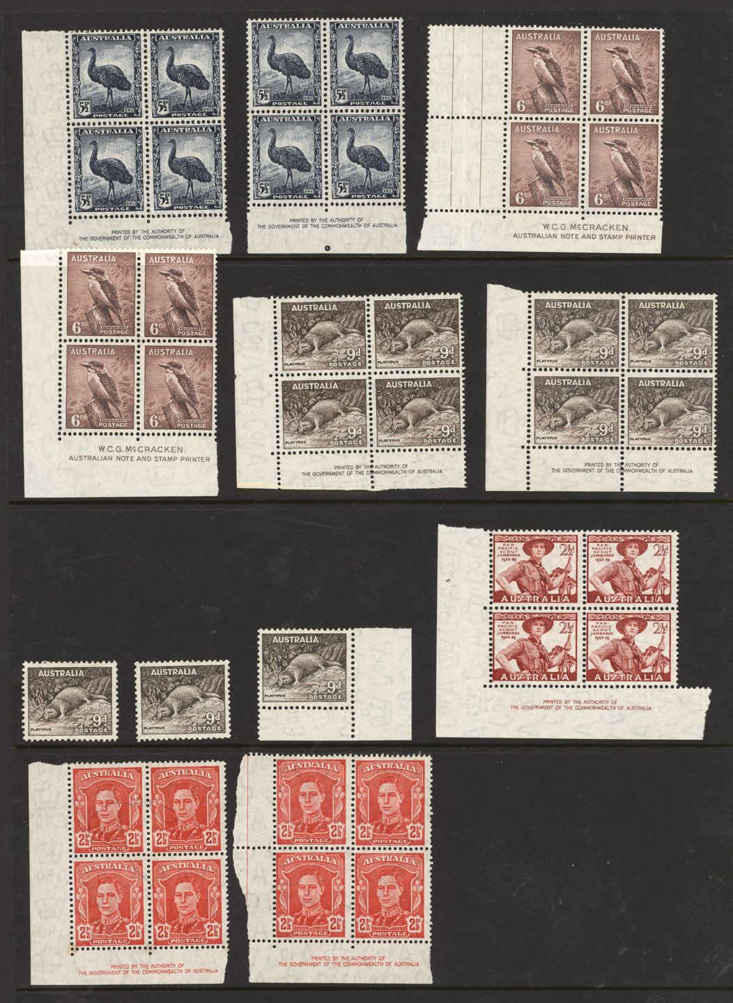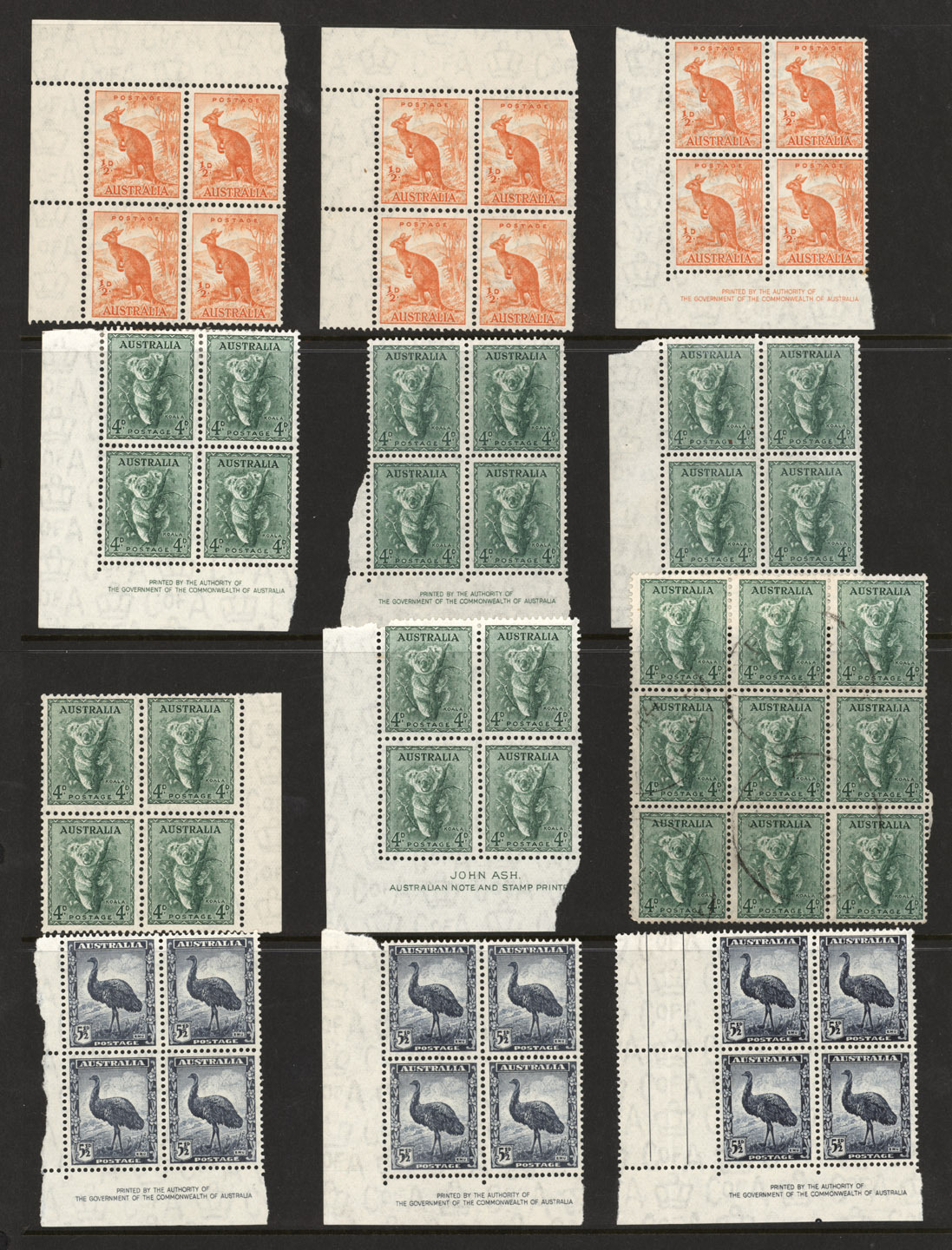 1929 (SG.116) 1½d Western Australian Swan: a specialised range on Hagner pages, comprising of an Imprint blk.4, Plates 1 -