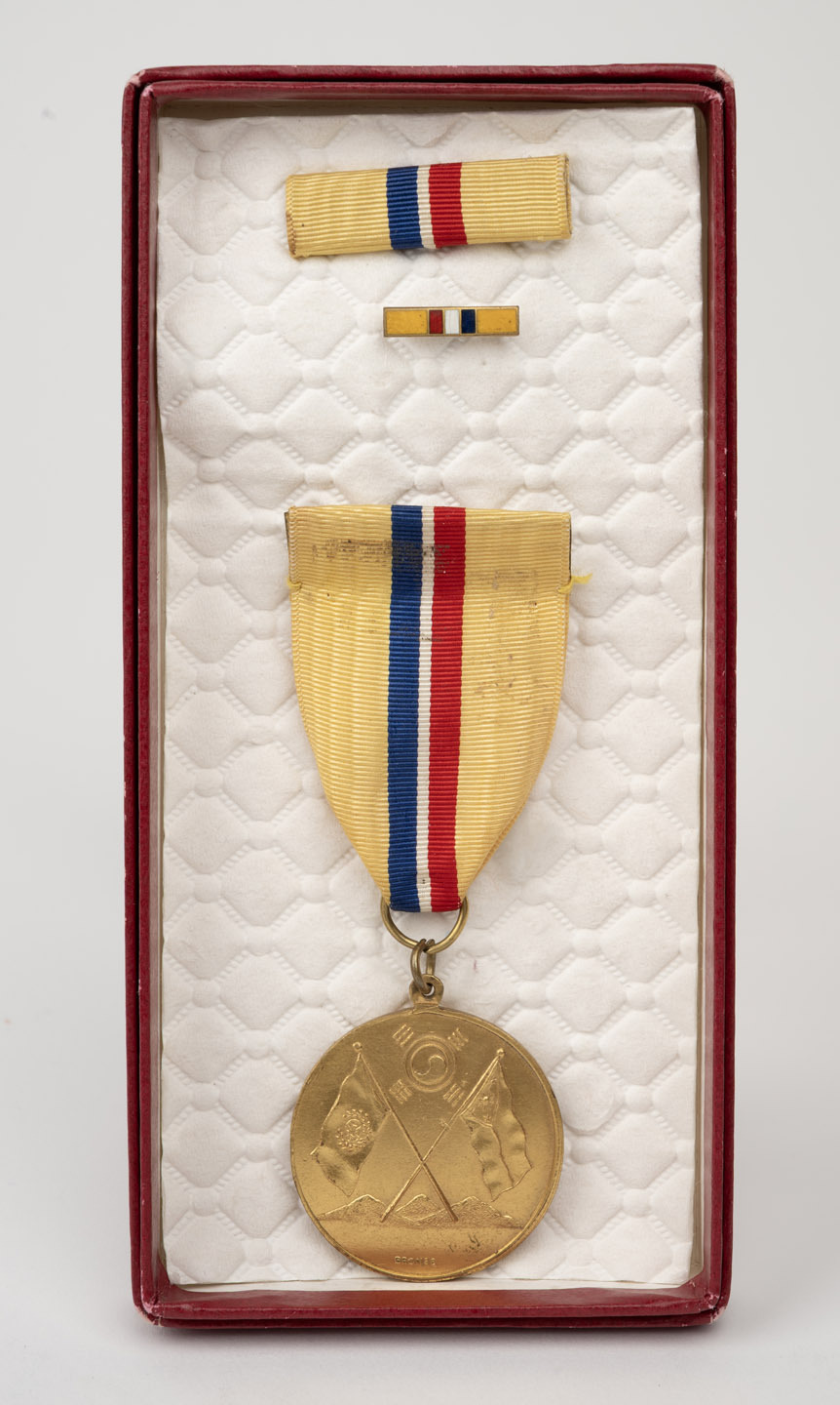 PHILIPPINES: 1950-53 Korean Campaign Medal with enamelled ribbon bar and lapel pin. The medal recognizes the 1,468-troop