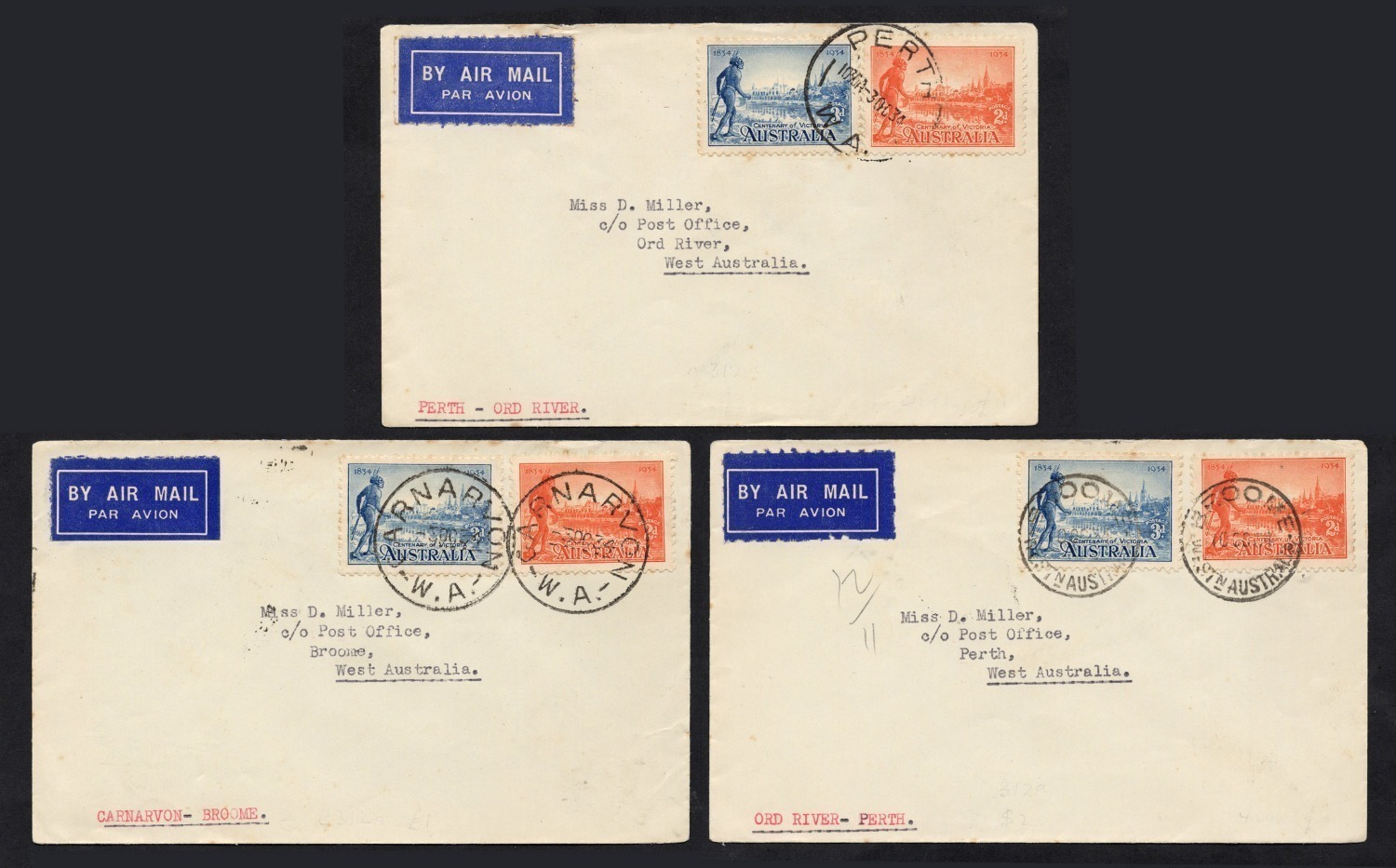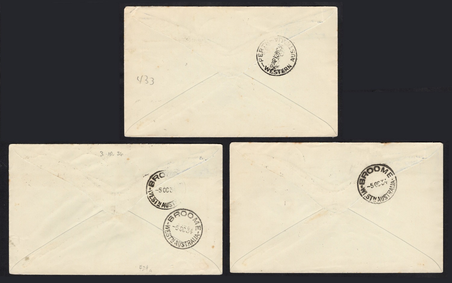 River, and Broome and Perth; all with arrival backstamps. (3). Cat.$450. (Image 1)