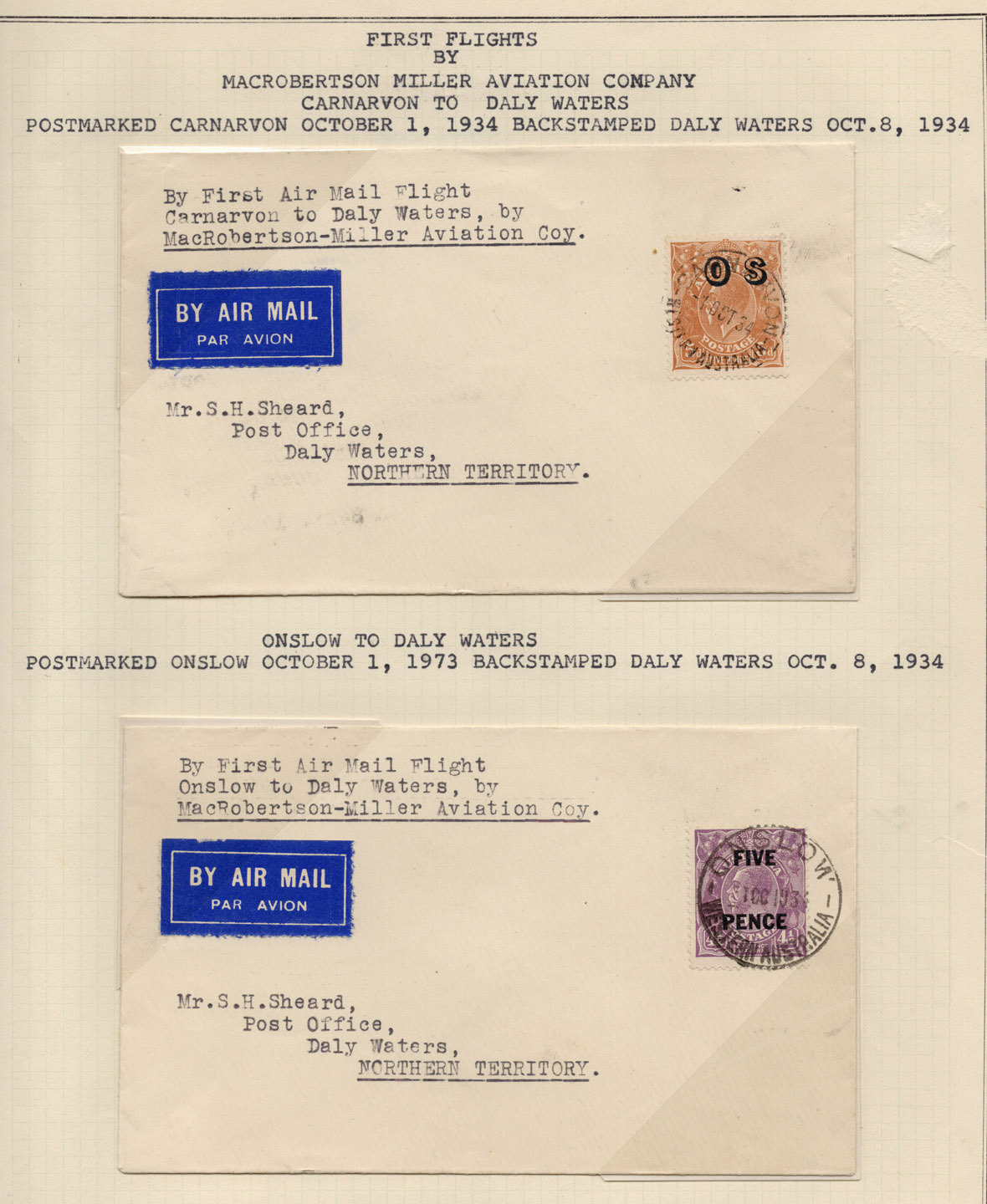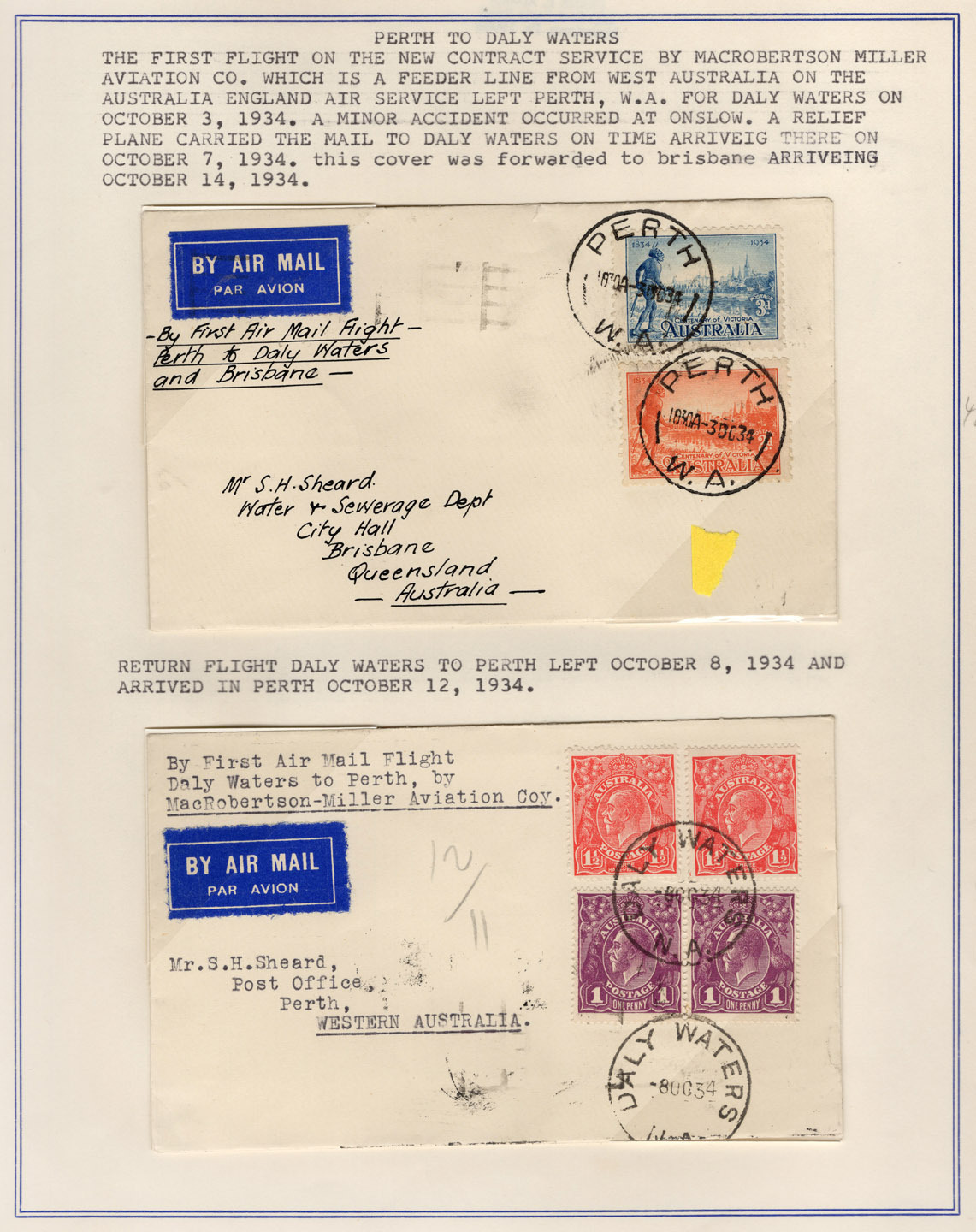 October 1934 (AAMC.428-29a) The Perth - Daly Waters Service operated by MacRobertson Miller: a comprehensive study on annotated