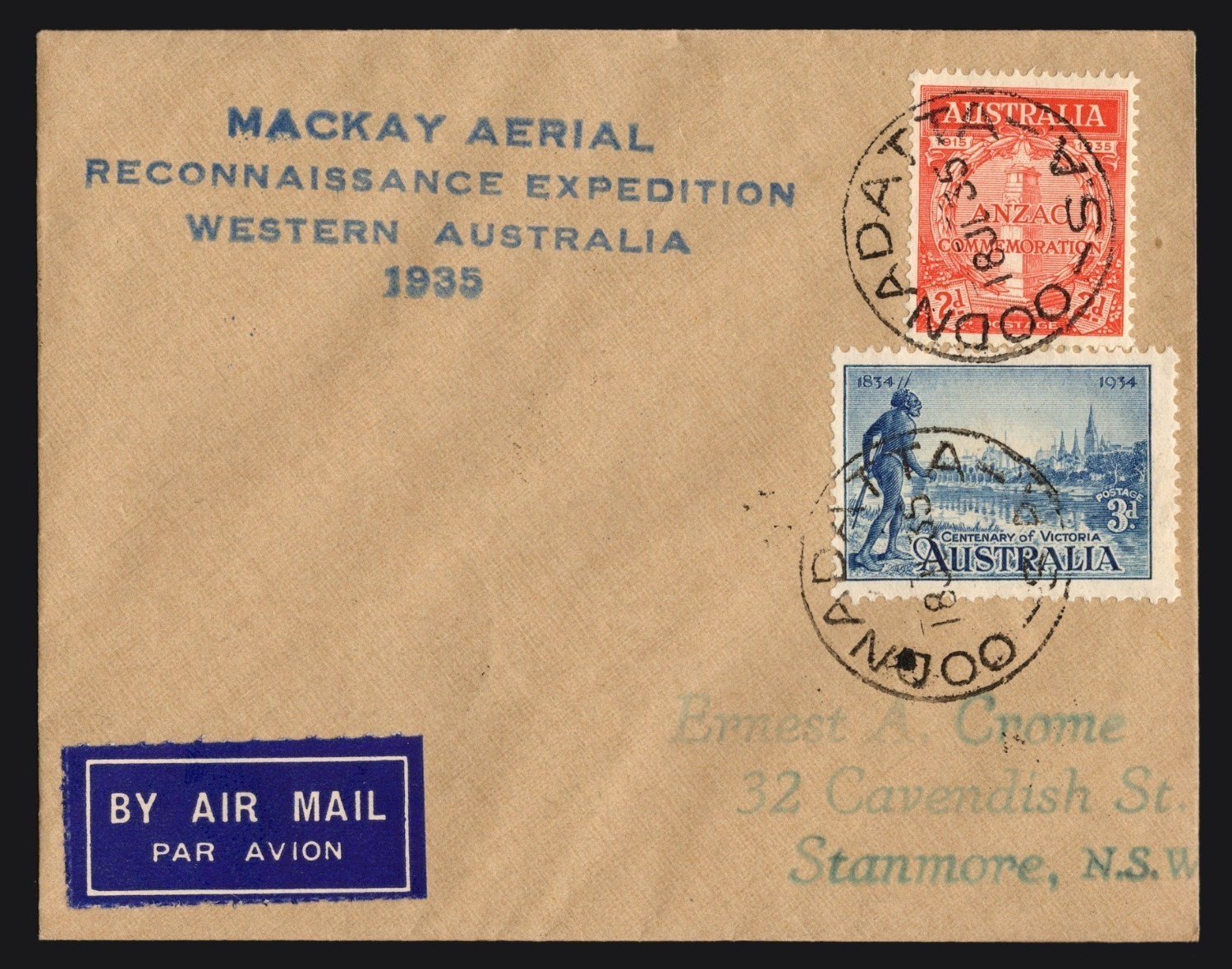 18 July 1935 (AAMC.517) Oodnadatta - Sydney flown covcer, carried on the Mackay Aerial Reconnaissance Expedition to Western
