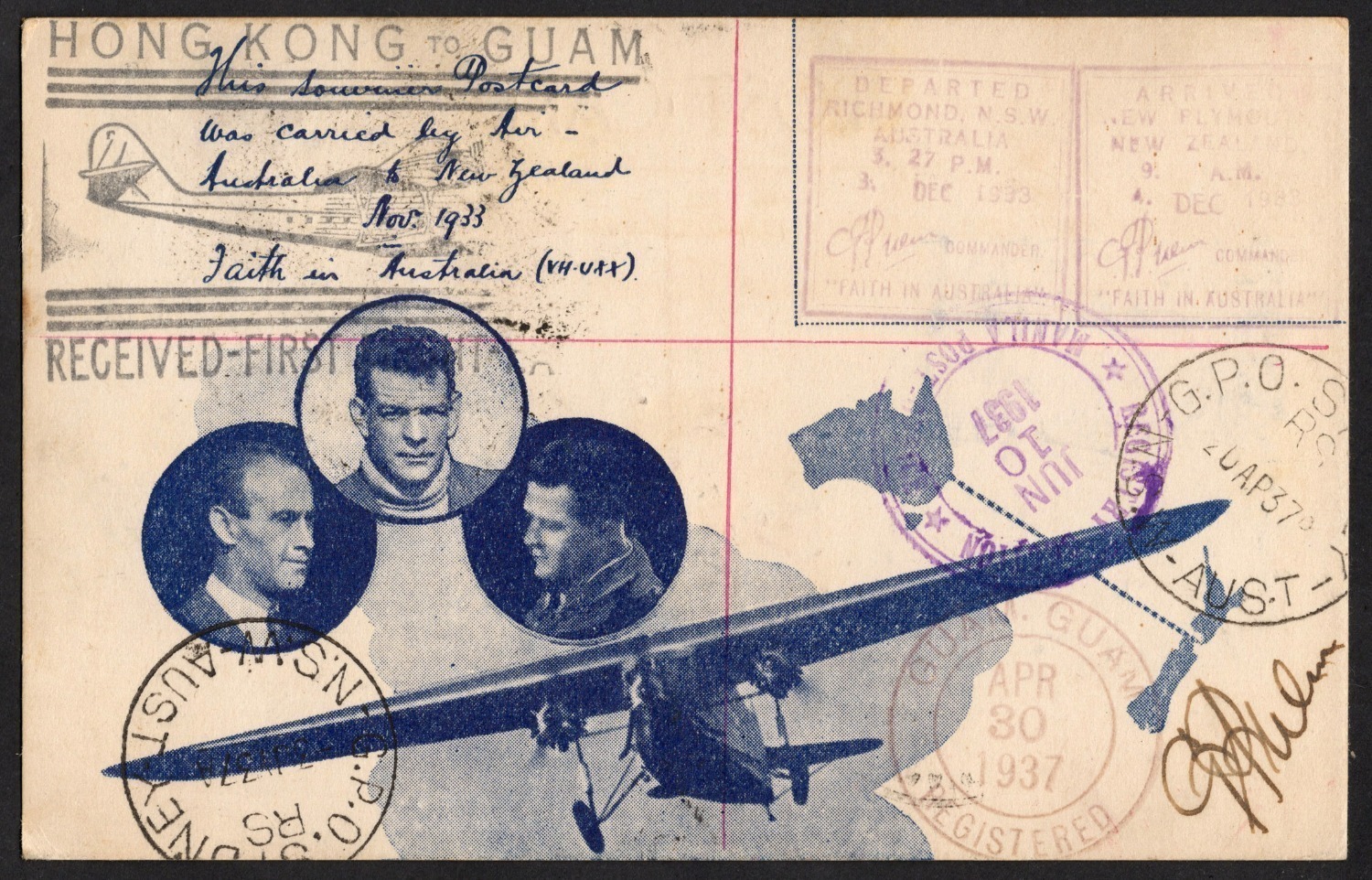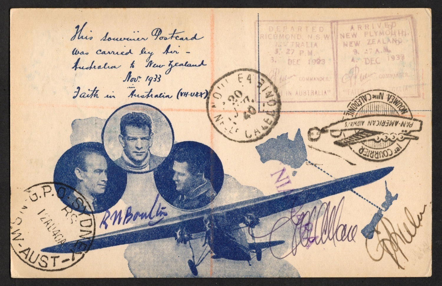 April 1937 (AAMC.728b) A special postcard, flown and signed by Charles Ulm on his December 1933 Trans-Tasman flight, additionally
