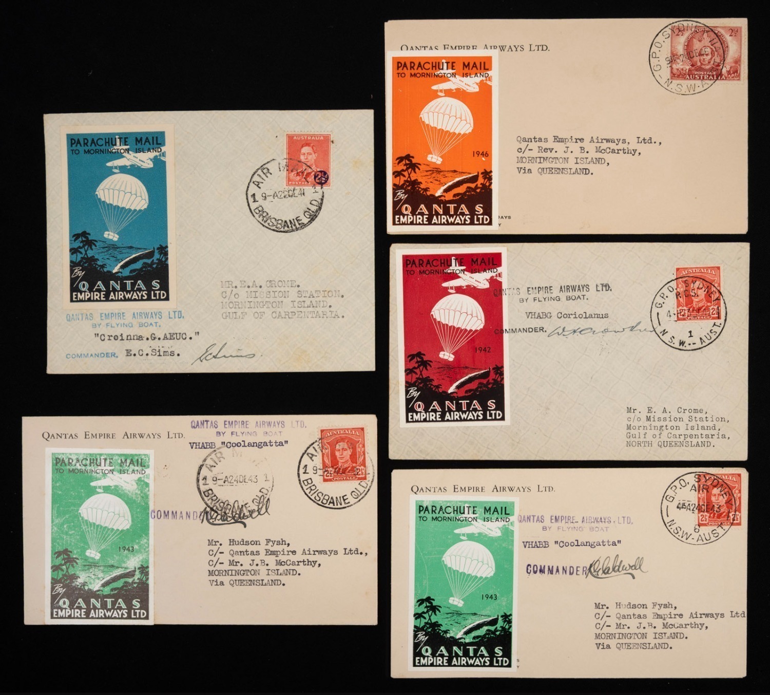 (AAMC.970 & 971) from Brisbane and Sydney; and 1946 (AAMC.1089) from Sydney; all with special vignettes and signed by the pilots and/or receiving officers. (5) (Image 1)
