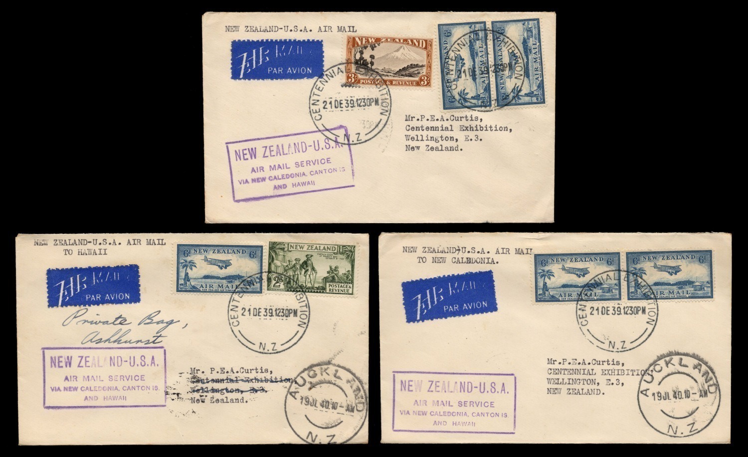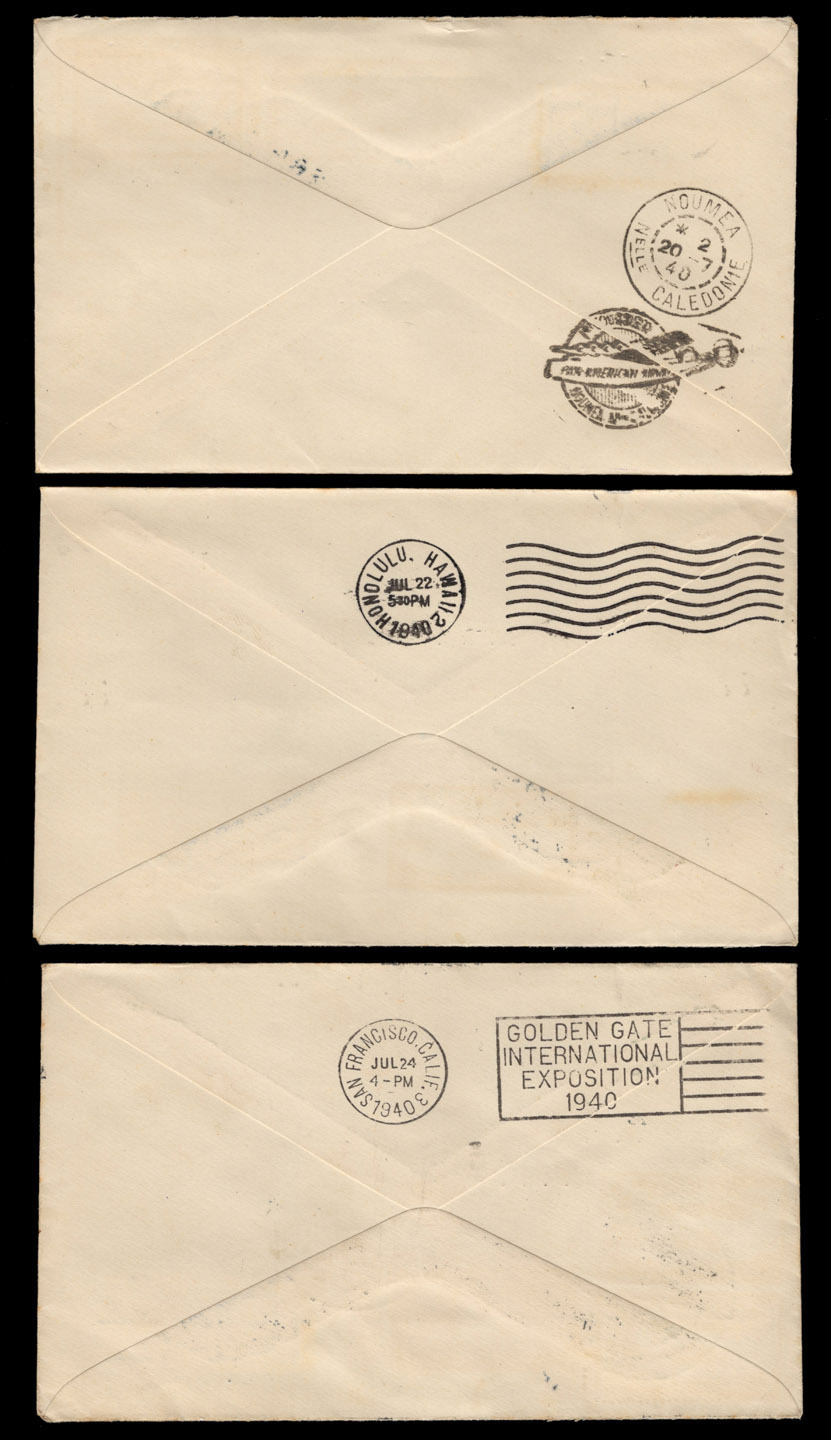 July 1940 (AAMC.905b) Three covers carried by PAN AM from Auckland to Noumea, Auckland to Honolulu, and Auckland to San Francisco;