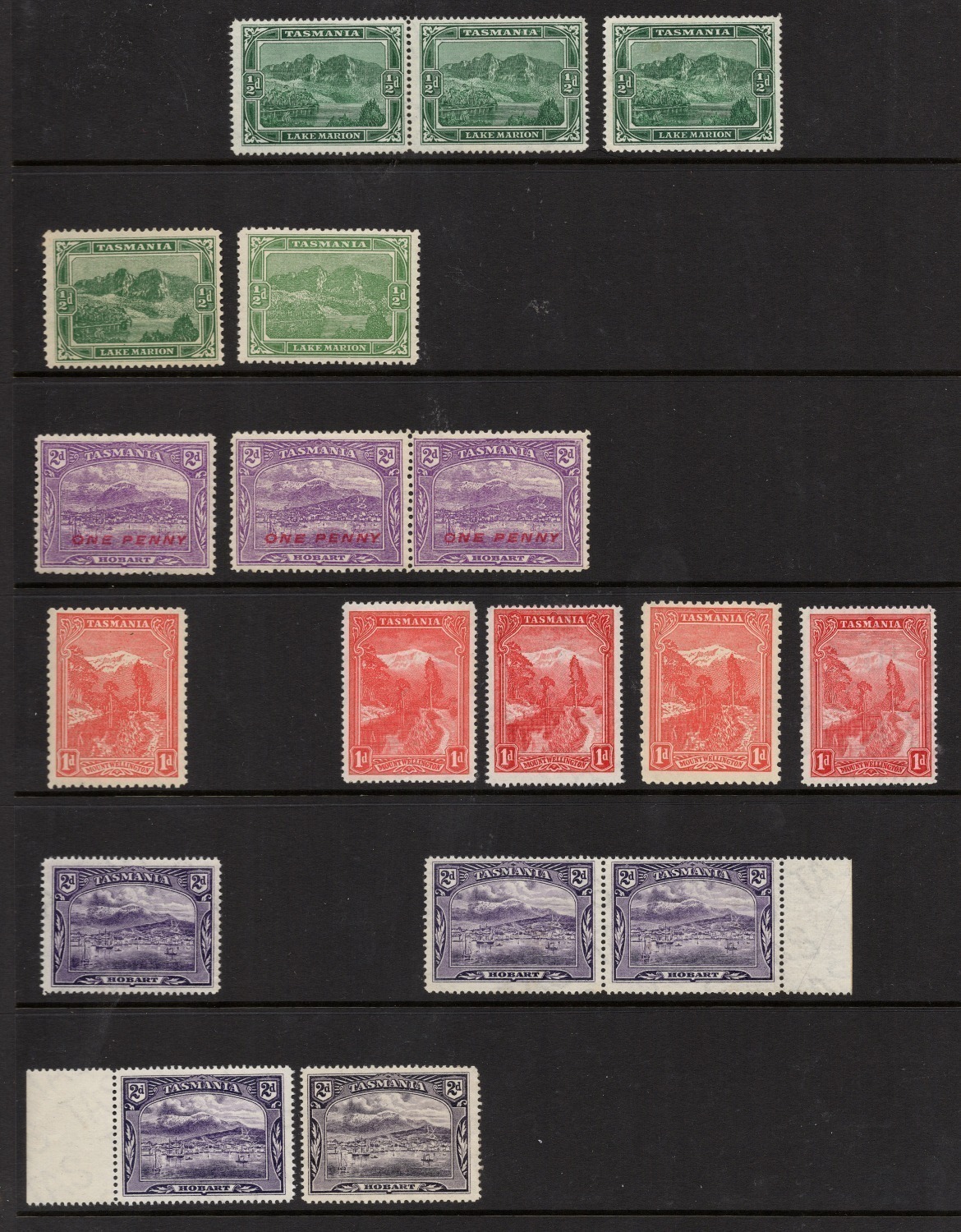 delightful issue. We note 4d Russell Falls (9), 5d Lake Clair (9) and 6d Dilston Falls (9), not checked for perforation or printing varieties, with many **. Cat. £1800 approx. (Total: 74). (Image 1)
