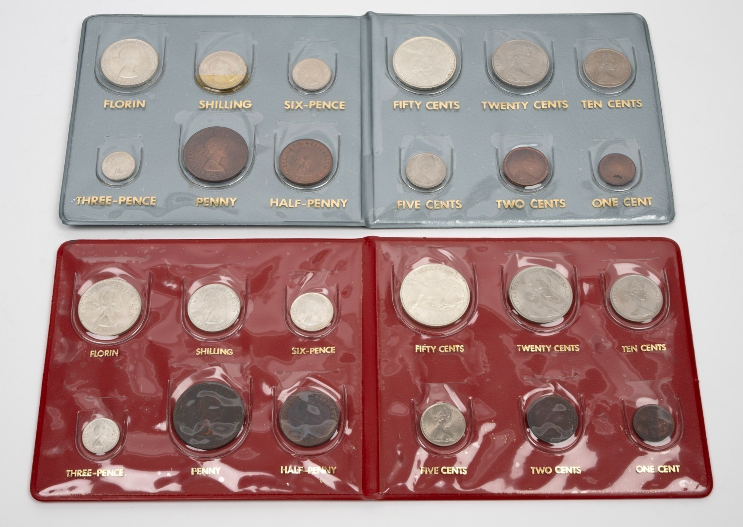 Hendo Souvenir Coin albums issued in February 1966, (2, one red, one grey), each housing an uncirculated "Last
