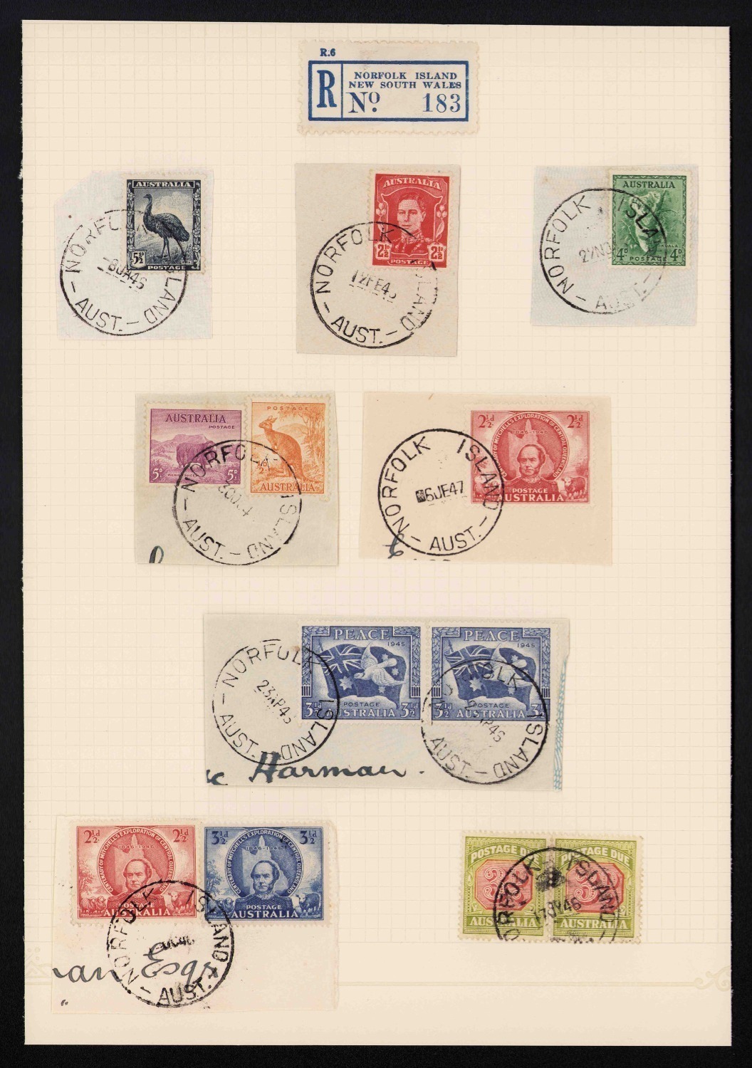 A range on Hagner pages including a 1929 cover to Melbourne, a 1947 cover to Adelaide, various Australian adhesives on piece tied