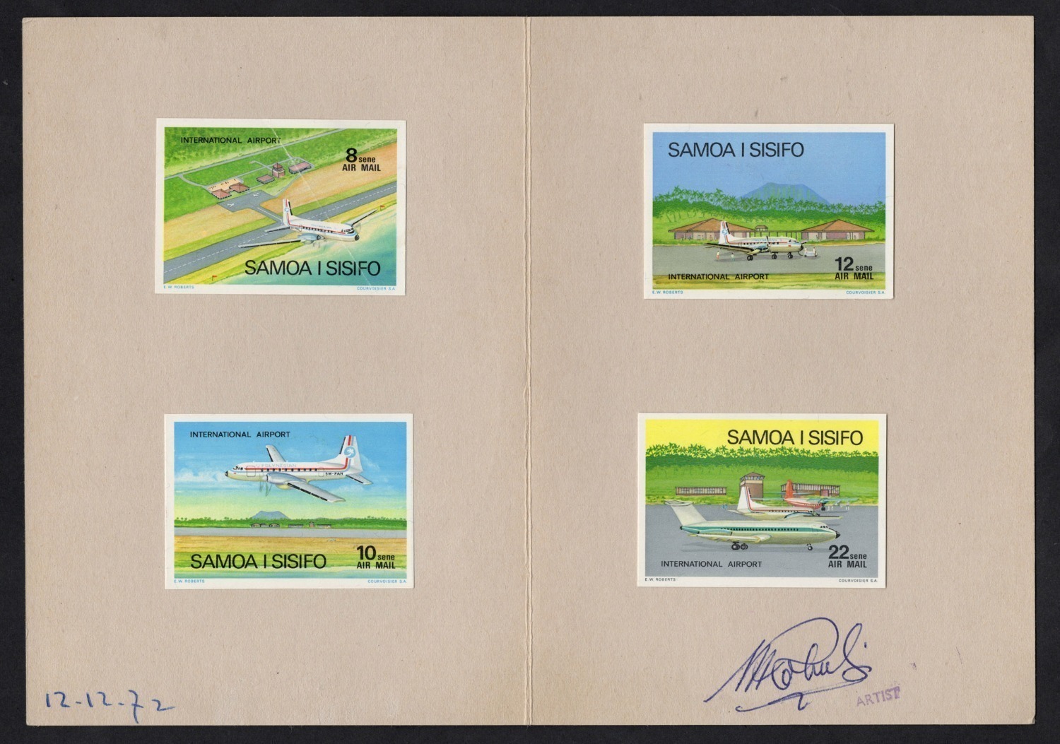1973 (SG.409-12) International Airport, set of four Imperforate Proofs mounted within the original Courvoisier folder, which is