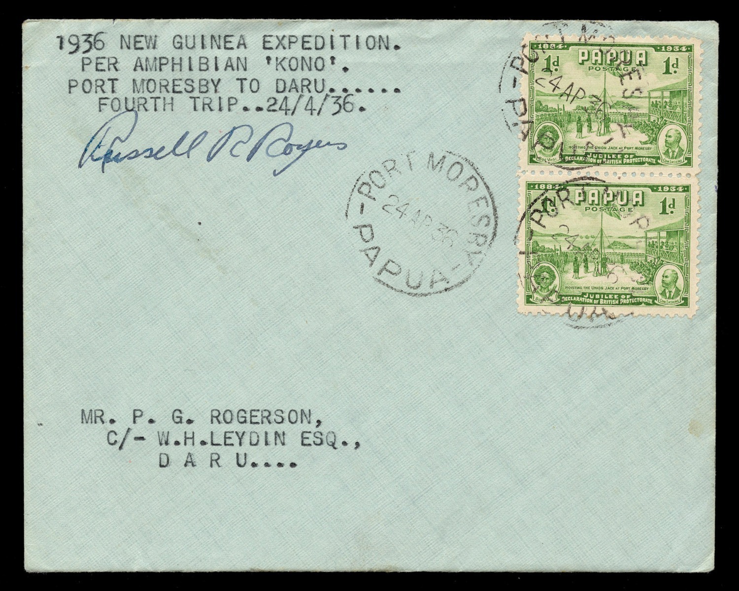 24 Apr.1936 (AAMC.P101) Port Moresby - Daru cover, flown by Rogers & Archbold on the fourth flight of the Second Archbold