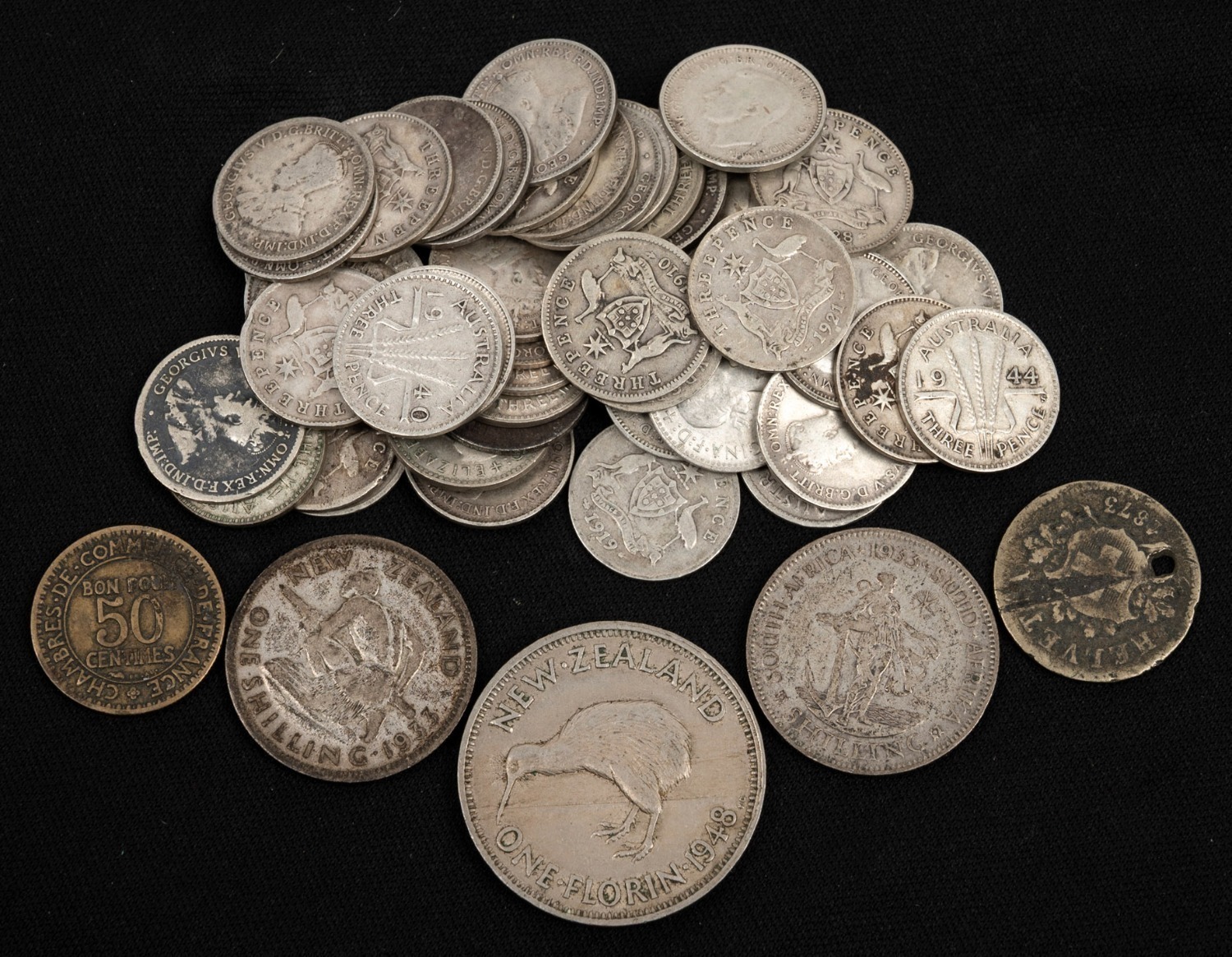 Group of forty-one 1910-44 types, together with eight 1947-64 types, plus five foreign coins of similar vintage. (54 items) (Image 1)
