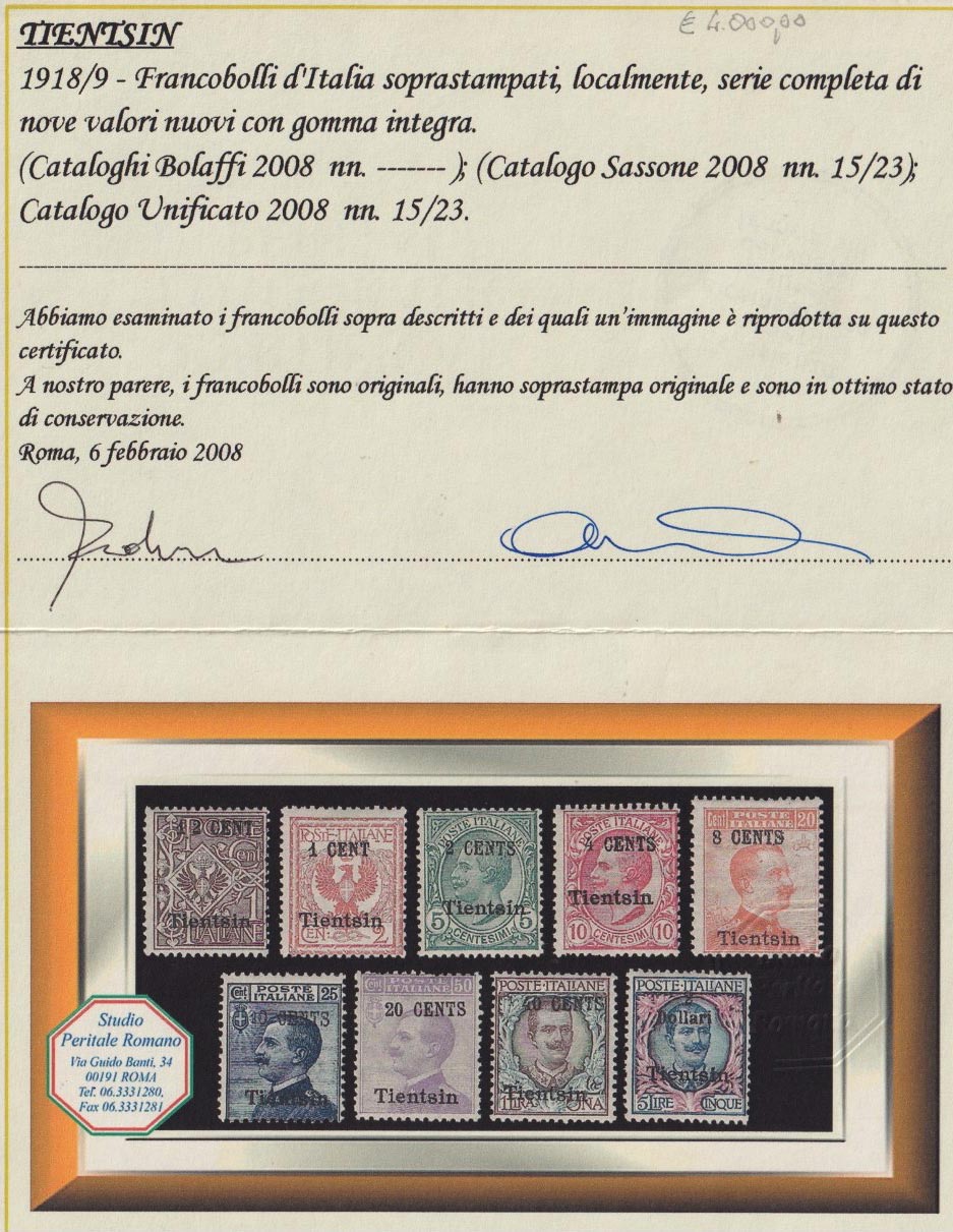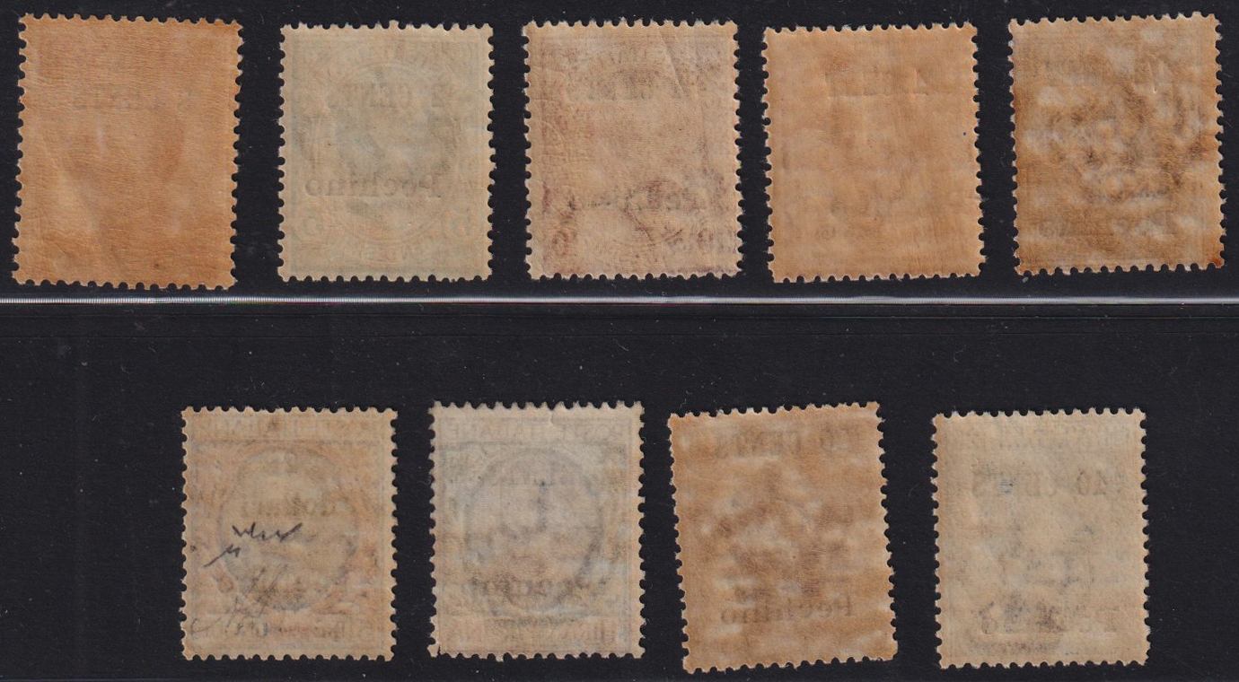 224 G image1918/19 SOPRASTAMPA LOCALE SU DUE RIGHE. La serie completa di 9 francobolli (nn.15/23) soprastampati tipograficamente. Certificato Studio Peritale Romano. (Image) (ImageA) (ImageB)