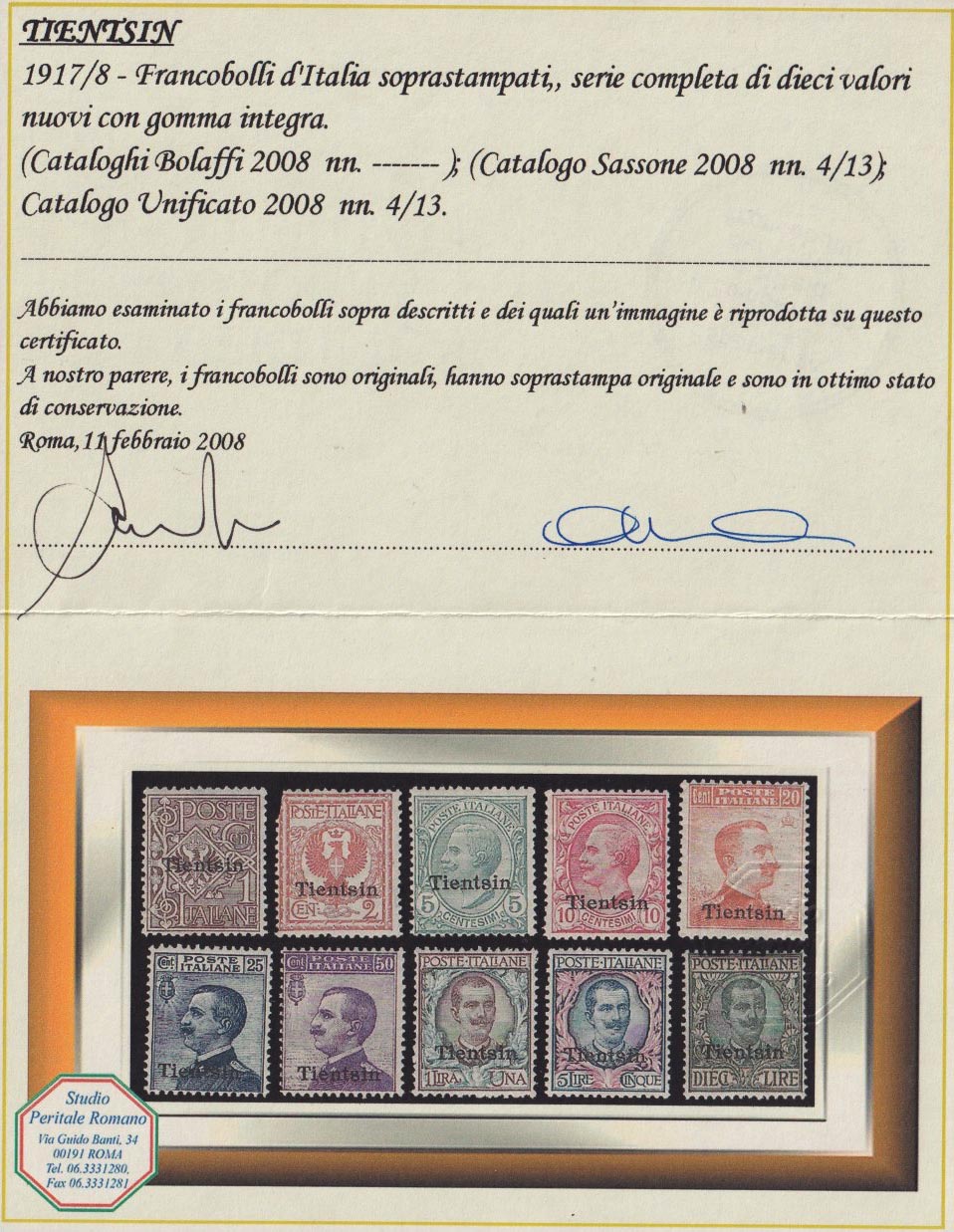 223 G image1917/18 SOPRASTAMPA A MACCHINA SU UNA RIGA. La serie completa di 11 francobolli (nn.4/13). Cert. Studio Peritale Romano. (Image) (ImageA) (ImageB)