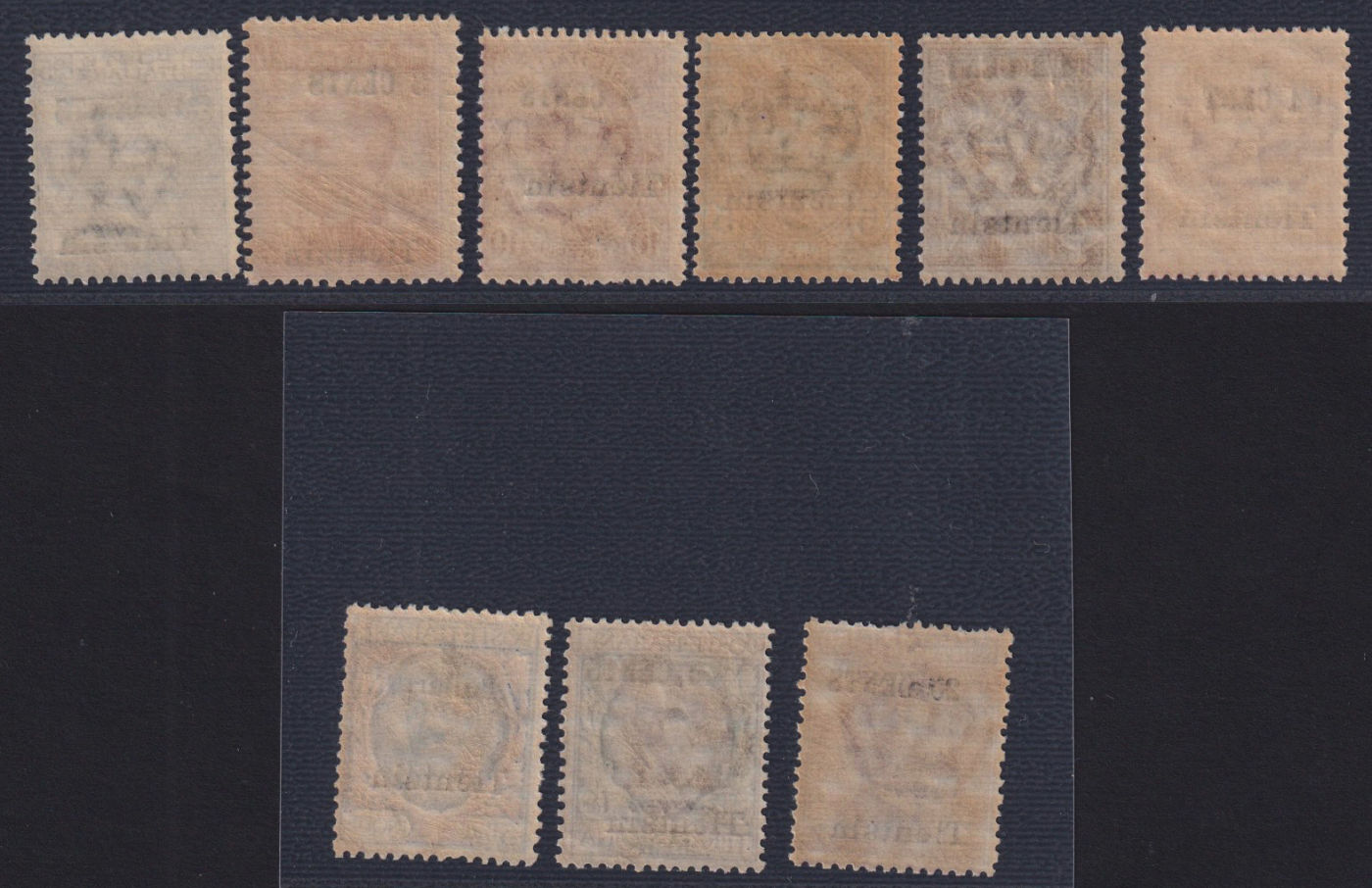 221 G image1918/19 SOPRASTAMPA SU DUE RIGHE. Serie completa di 9 francobolli soprastampati localmente con nuovo valore (nn.19/27). (Image) (ImageA) (ImageB)