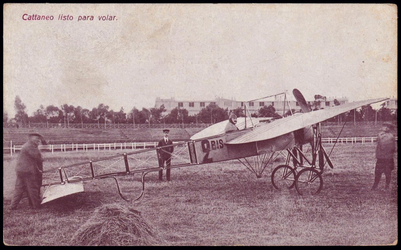 1910 COLONIA - BUENOS AIRES / BARTOLOMEO CATTANEO. Cartolina orizzontale "Cattaneo listo para volar", nuova. Longhi 403. (Image) (ImageA)