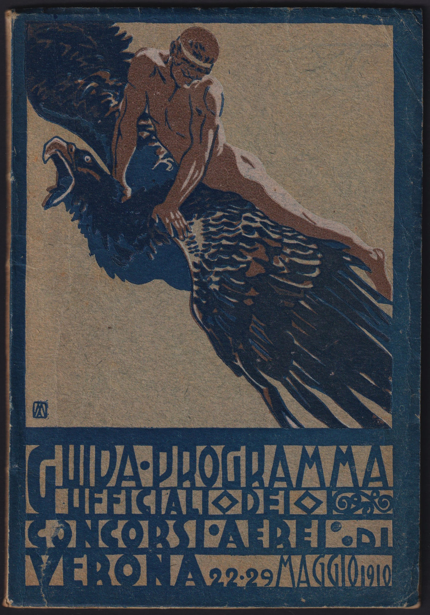 1910 VERONA / CONCORSI AEREI INTERNAZIONALI. Guida ufficiale (pagine 72 con grande cartina del campo di aviazione in ultima pagina e tutte le veline interne), ed. "La Grande Attualità" - Milano. Longhi 259. Riprodotta a