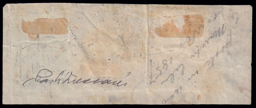 FALSI PER FRODARE LA POSTA. Francobollo da 10 grana I tipo falso dell'epoca rosso bruno che presenta la stampa talmente irregolare da avere la parte destra del disegno spostata in basso rispetto al resto del