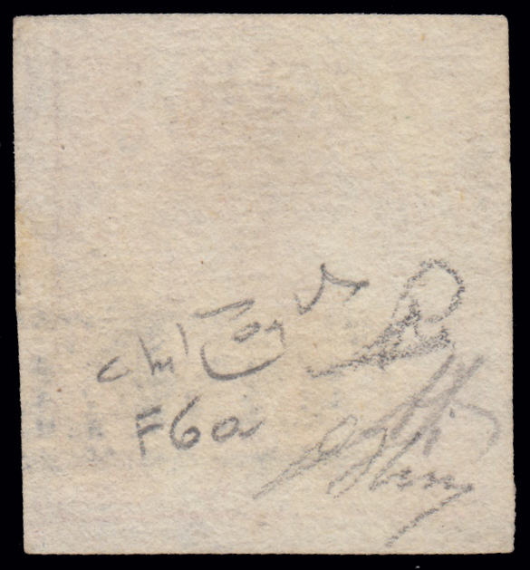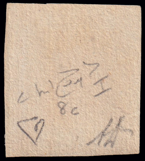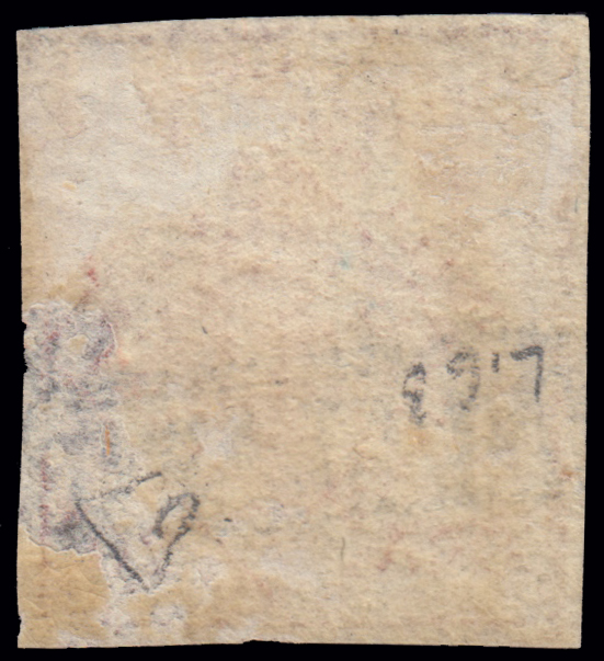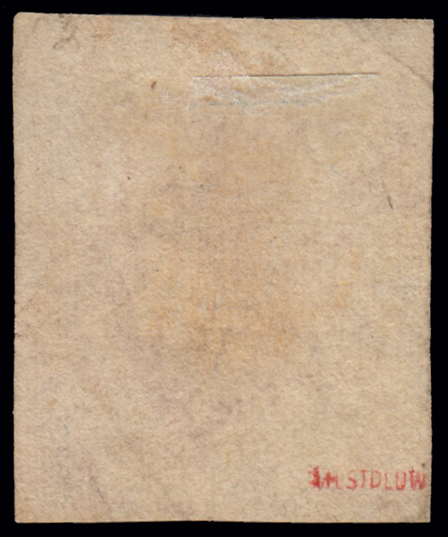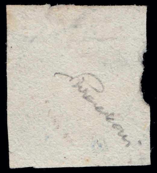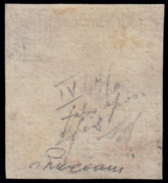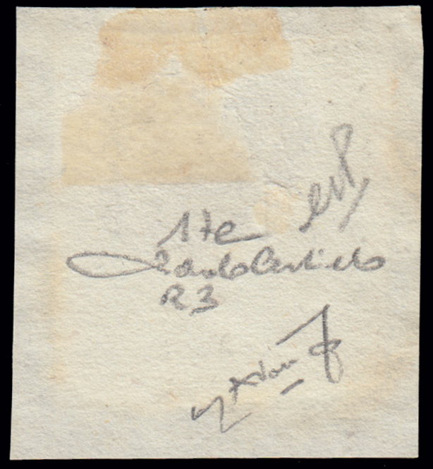 francobollo. Presenta piccoli assottigliamenti della carta che nulla tolgono alla rarità dell'esemplare che ha margini perfetti da tutti i lati. Dettagliato certificato "storico" A. Diena (1972). (Image) (ImageA)