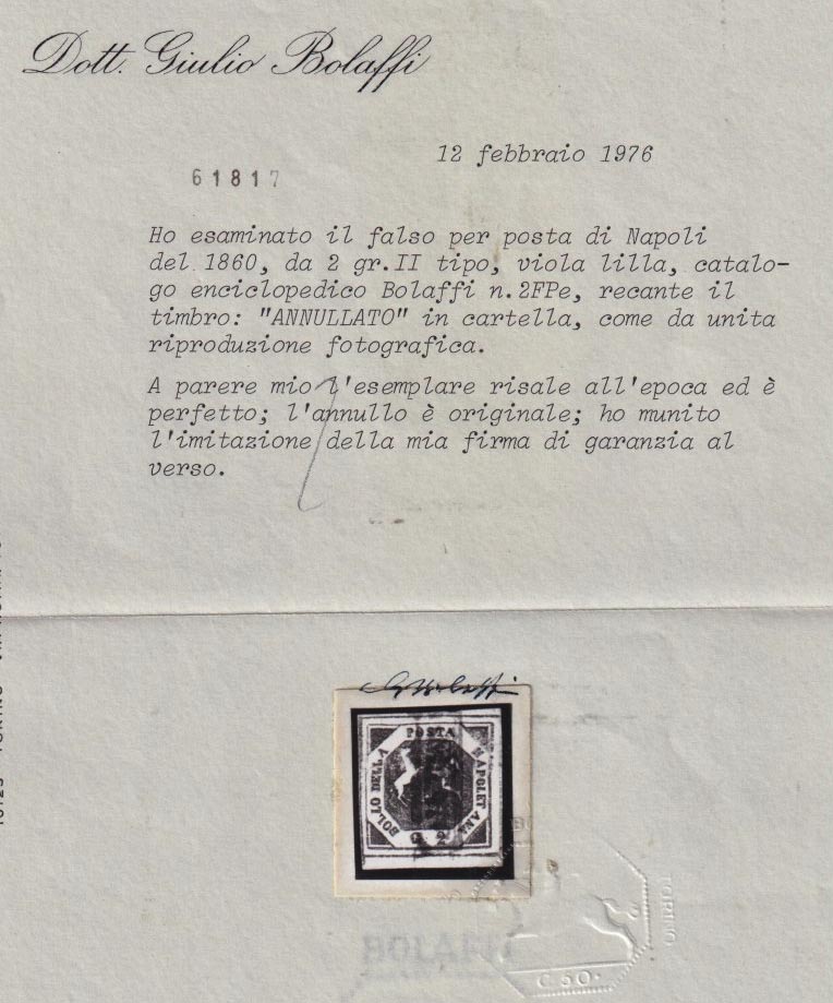 certificato "storico" G. Bolaffi (1976). (Image) (ImageA)