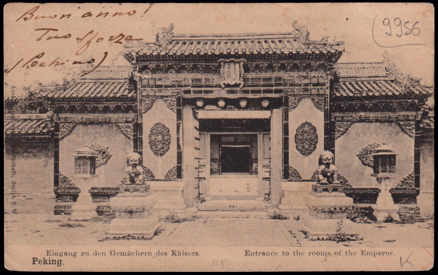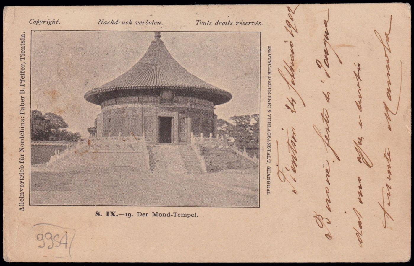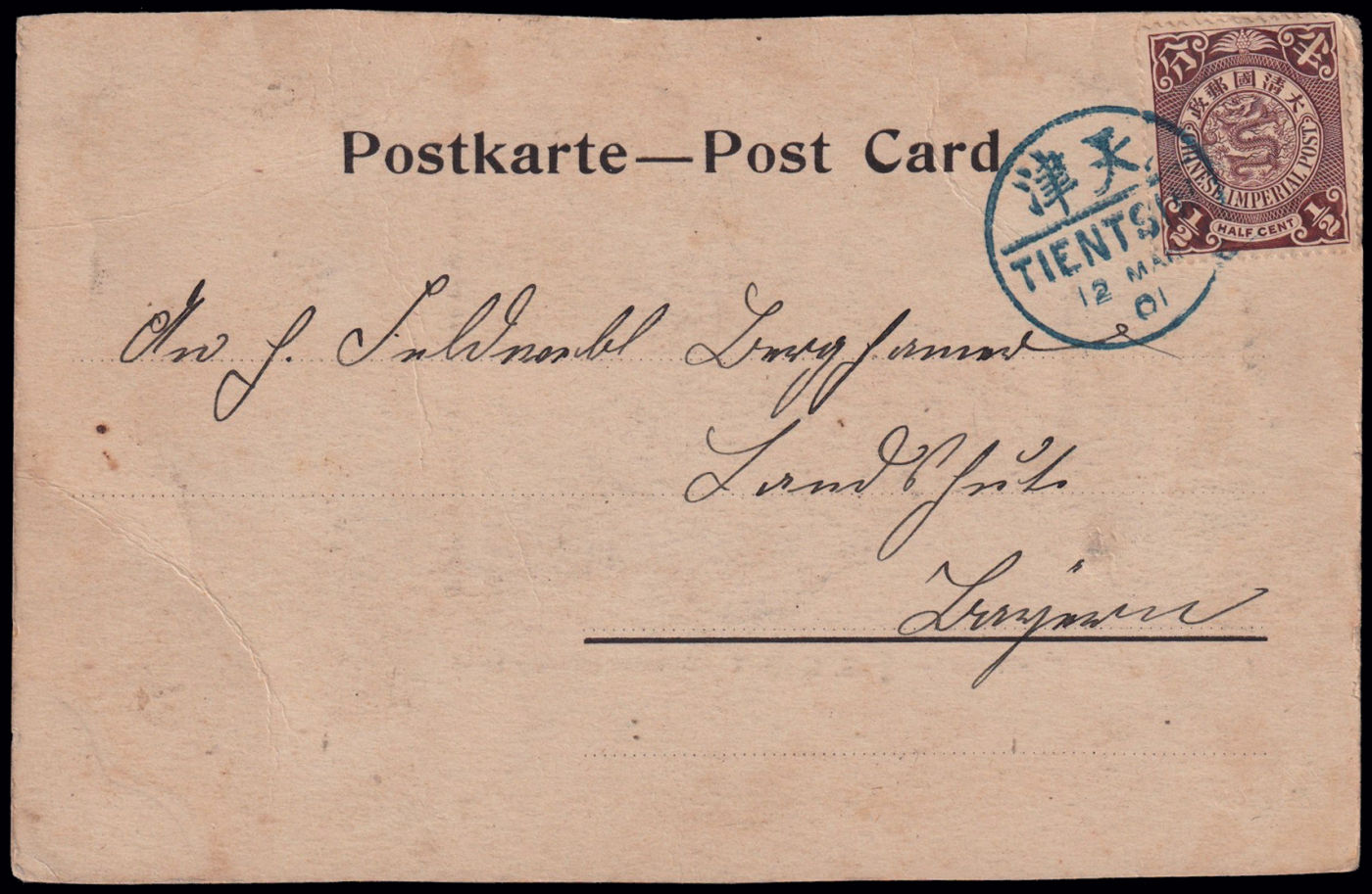 423 imageGUERRA DEI BOXER. Cartolina spedita da Tientsin il 12/3/1901 per la Germania affrancata con 1/2 cent. Dragone. (Image) (ImageA)