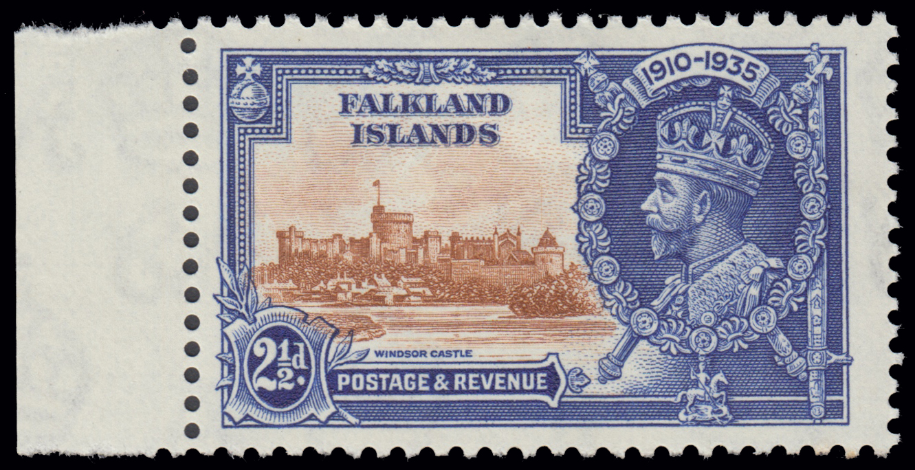 435 Z image1935 SILVER JUBILEE VARIETY. 2 1/2 d. brown & deep blue FLAGSTAFF ON RIGHT HAND TURRET (SG 140d), unused with original gum, mounted. (Image) (ImageA)