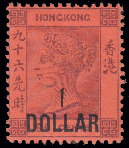 438 Z image1891 Q. VICTORIA. $ 1 on 96 c. purlpe on red with ovpt in black, unused well centred with original gum (SG 47). Very fine. (Image) (ImageA)