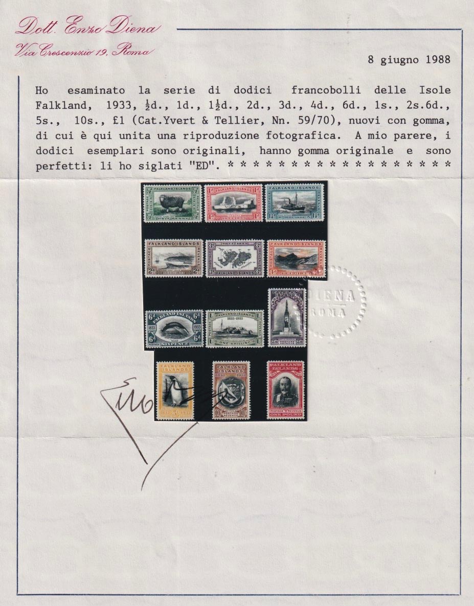 432 Z image1933 CENTENARY OF BRITISH ADMINISTRATION. Complete set of 12 values from 1/2d. black & green to £1 black & carmine, unused set with original gum. Cert. E.Diena. Very fine and scarce. (Image) (ImageA) (ImageB) (ImageC)
