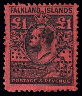 427 G image1923 KING GEORGE V. £ 1 purple & black on red, unused right side marginal, original gum, unmounted. Fine. (Image) (ImageA)
