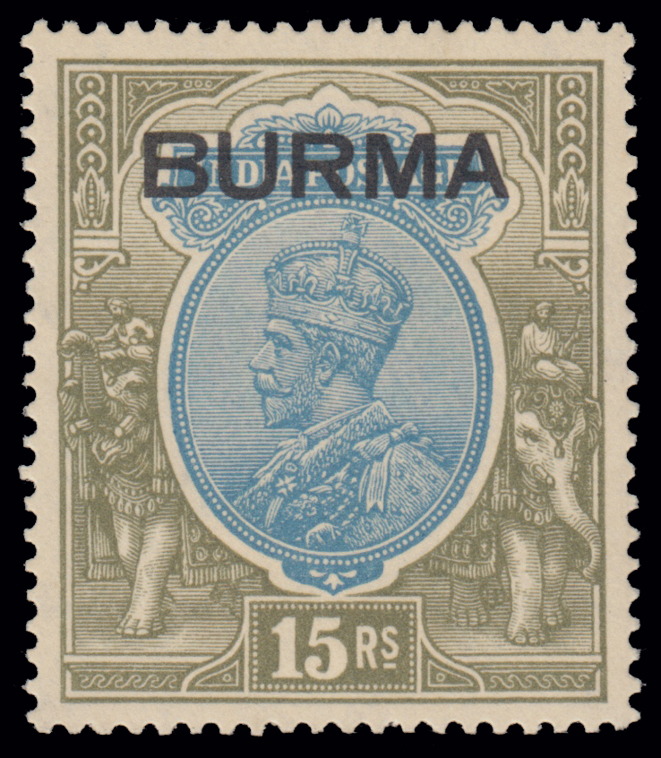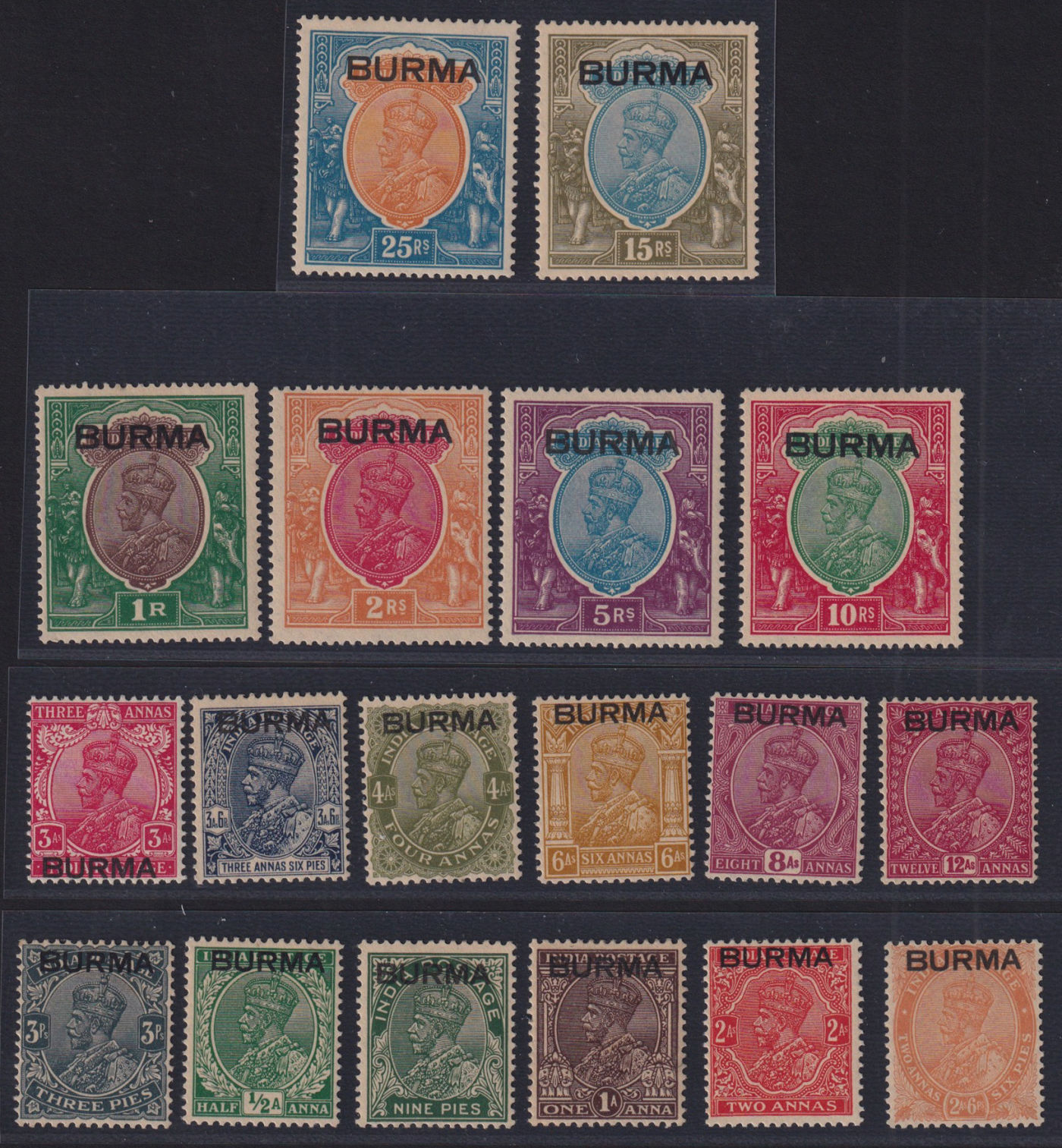 439 Z image1937 BURMA. Stamp of India ovrpt in black, set of 18 to 25r. unused with large part original gum. Fine and scarce. (Image) (ImageA) (ImageB) (ImageC) (ImageD) (ImageE)
