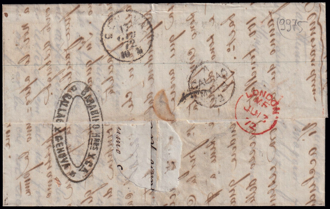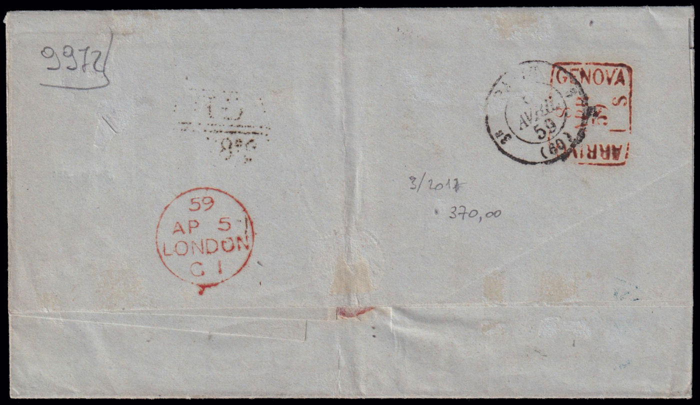 isthmus carried on board of the Royal Mail Steam Packet Co. and arrived in Southampton was carried trough France in accordance with the Anglo-sardinian Convention (confirmed by the absence of French transit marking. 30 decimi charged on delivery.