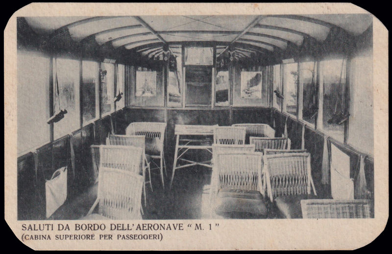 1919 VOLI DEL DIRIGIBILE M1 NEI DINTORNI DI ROMA. Cartolina aeropostale della cabina superiore passeggeri, affrancata per 15 centesimi annullati col timbro meccanico a linee ondulate e spedita a Napoli in data