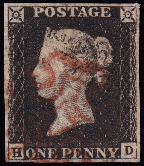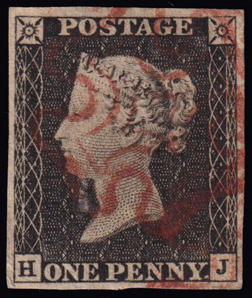 234 U imageQUEEN VICTORIA 1d.. Plate 1a, letters HJ, used with red Maltese cross cancellation. Four wide margins. Very fine. (Image) (ImageA)