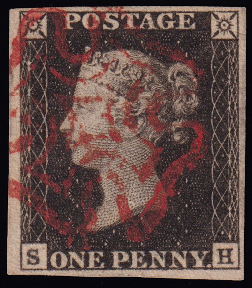 235 U imageQUEEN VICTORIA 1d.. Plate 1a, letters SH, used with red Maltese cross cancellation. Four wide margins. Superb. (Image) (ImageA)