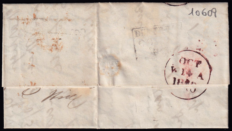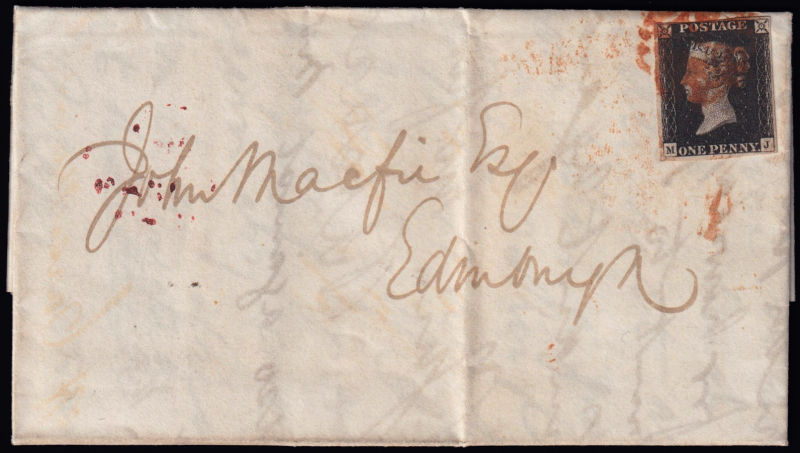 237 L imageQUEEN VICTORIA 1d.. Letters MS, on written cover to Edinburgh on date 13 October 1840 with red Maltese cross cancellation. Four wide margins. Closed on top. (Image) (ImageA)