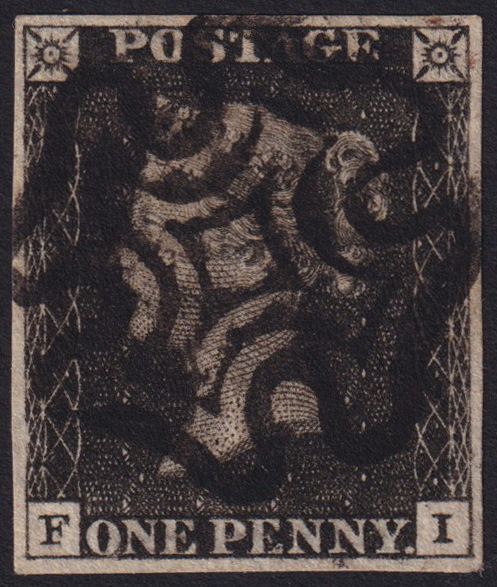 240 U imageQUEEN VICTORIA 1d.. Plate 8, letters FI, used with perfectly centred black Maltese cross cancellation. Four wide and even margins. Superb. (Image) (ImageA)