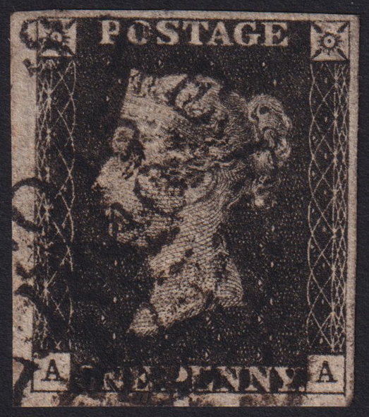 242 U imageQUEEN VICTORIA 1d.. Plate 8, letters AA, used with black city circle cancellation. Four wide margins. (Image) (ImageA)