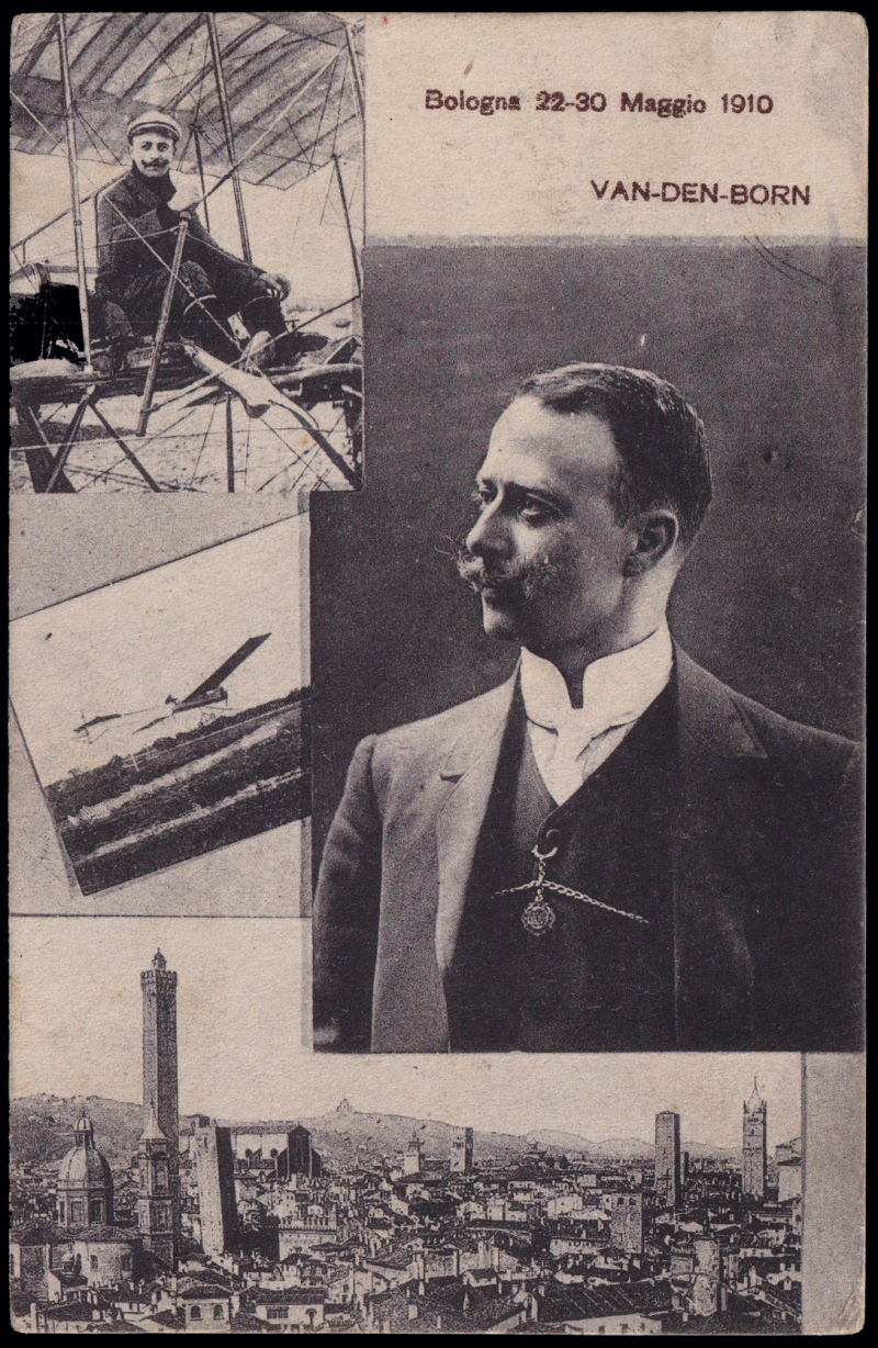 1910 BOLOGNA / ESPERIMENTI DI AVIAZIONE. Cartolina verticale "Bologna 22-30 maggio 1910 VAN DEN BORN". Viaggiata. Longhi 284. (Image) (ImageA)