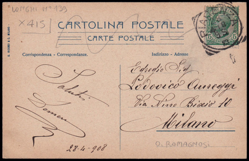 Timbro di arrivo. Firme di garanzia Bocchino, Landmans e timbrino Vaccari. Longhi 174. (Image)