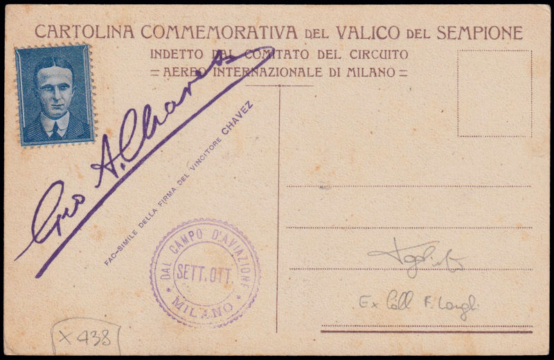 1910 BRIGA - DOMODOSSOLA PRIMA TRAVERSATA DELLE ALPI IN AEROPLANO. Cartolina ufficiale firmata P. Codognato. Nuova. Longhi 334.