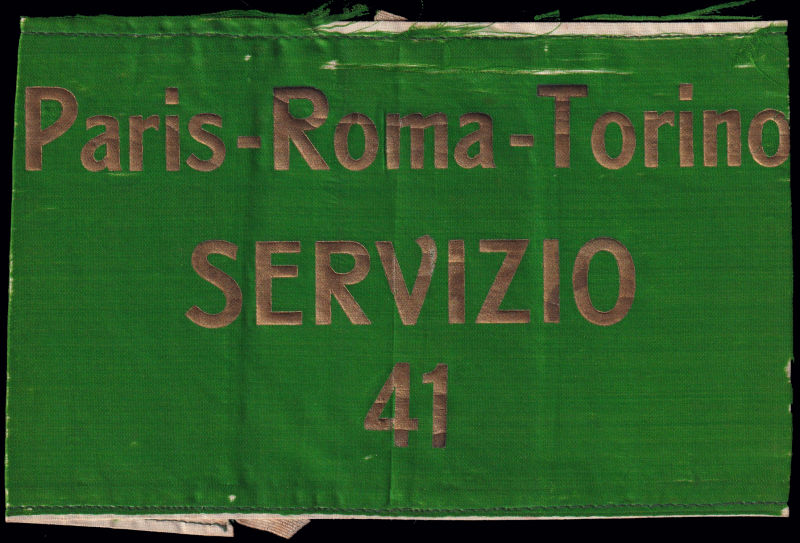 1911 RAID PARIGI - ROMA - TORINO. Paris - Roma - Torino SERVIZIO 41. Fascia verde del comitato di servizio del Raid. (Image)