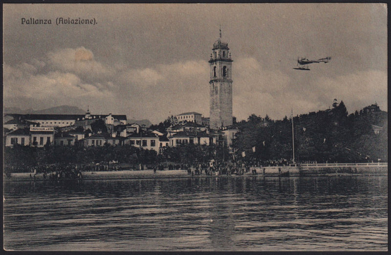 1912 PALLANZA / PRIMO VOLO SULLA CITTA'. Cartolina "Pallanza Aviazione", fotografia Caccia - Intra. Nuova. Longhi 582. Rara perchè il fotografo caccia riuscì, durante il primo volo di un idrovolante a Pallanza, a