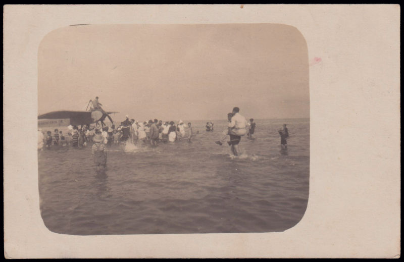 1913 RAID VENEZIA - RIMINI - VENEZIA. Cartolina fotografica di idrovolante di Mendoza di passaggio a Rimini. Nuova. Longhi 699b (nuova numerazione). Riprodotta a pag. 216 del catalogo "Aerofilia Italiana" nuova