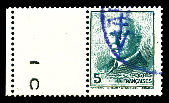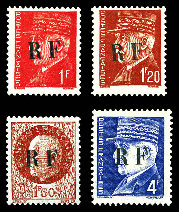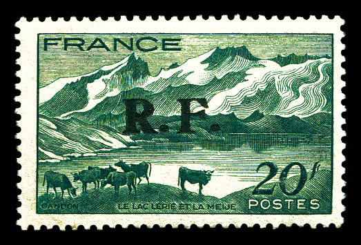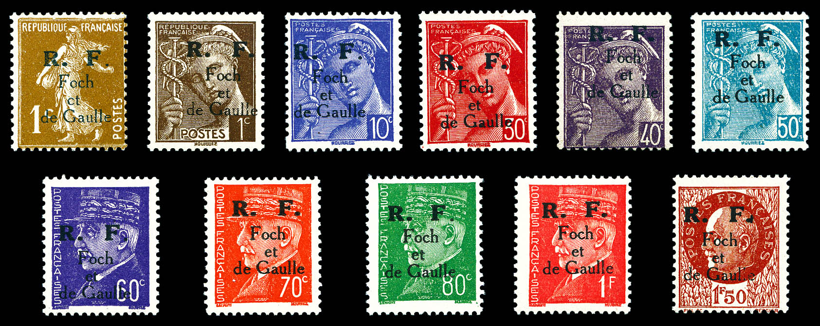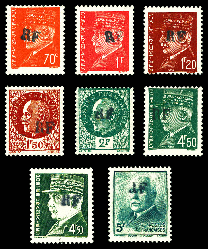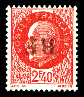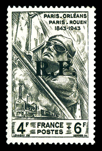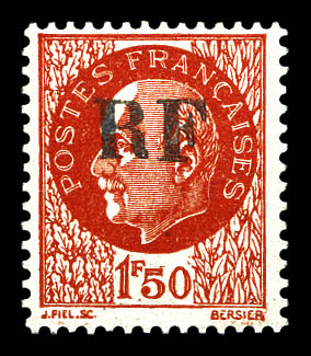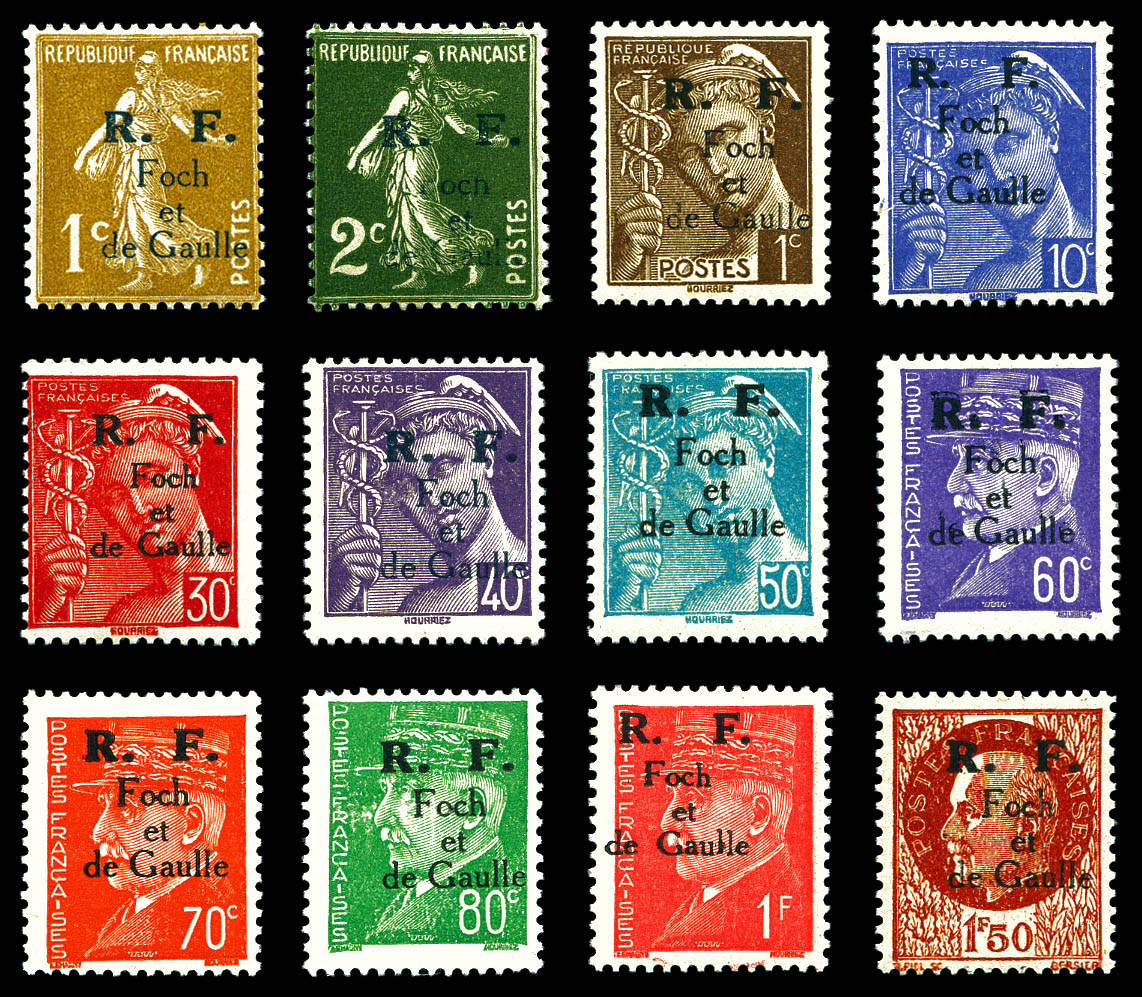 + croix de Lorraine- 2fr vert surch RF- tous surcharge en violet obl Toulouse RF 11.11.44- au recto en rouge 'Anniversaire 11 novembre 1944'. TTB. R. (signé SCHELLER/certificat) Qualité: Oblitéré Cote: 8750 euros (Image)