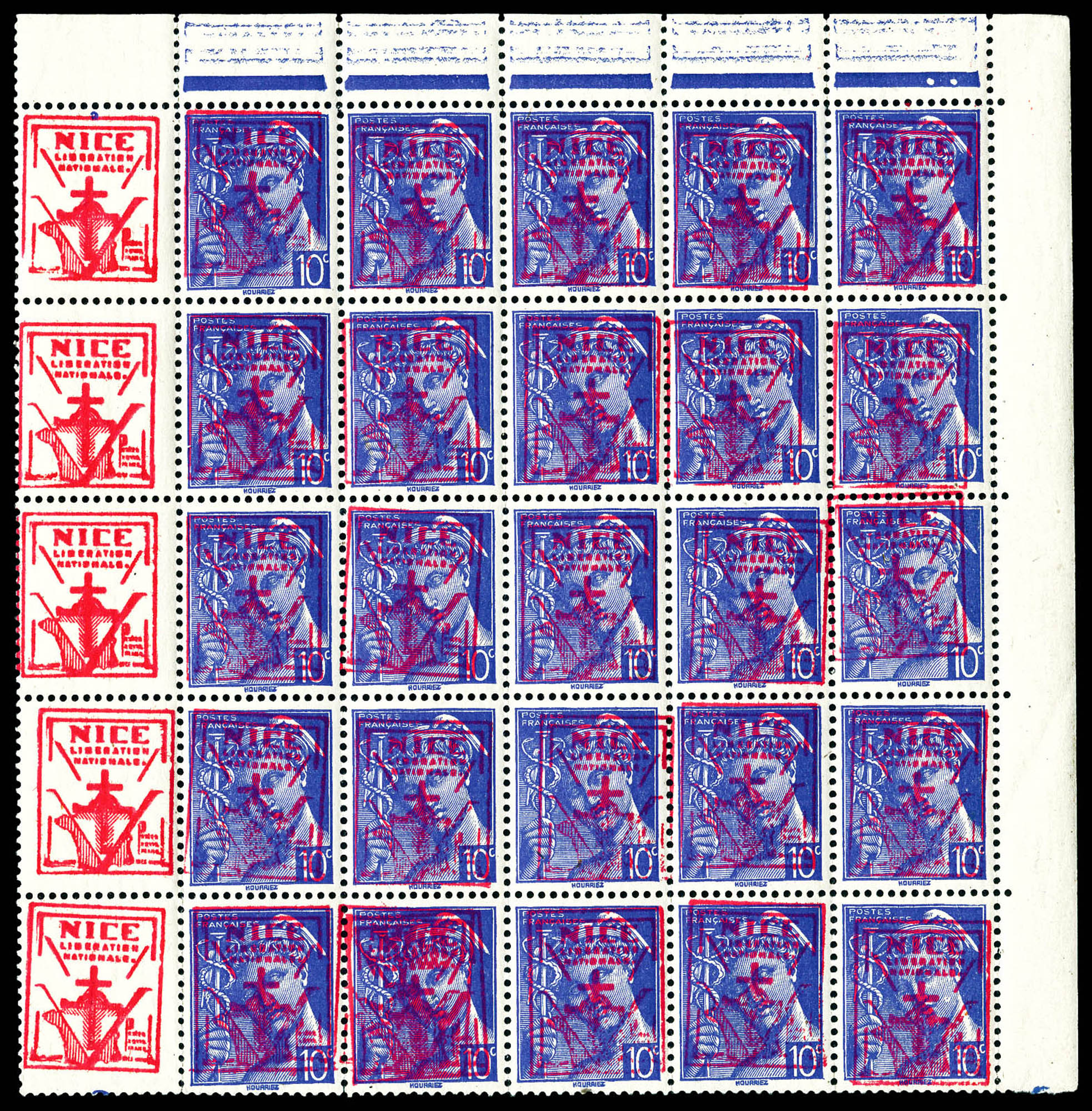 N°1, St LAURENT du VAR, 10c bleu en bloc de 25 ex bdf. TB Qualité: ** Cote: 900 euros (Image)