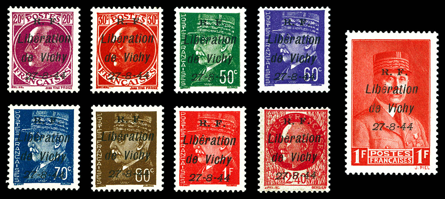 VICHY: N°1, 2, 4, 5, 7, 9, 10, 14 et 19 les 9 valeurs TTB (certificat) Qualité: ** Cote: 1602 euros (Image)