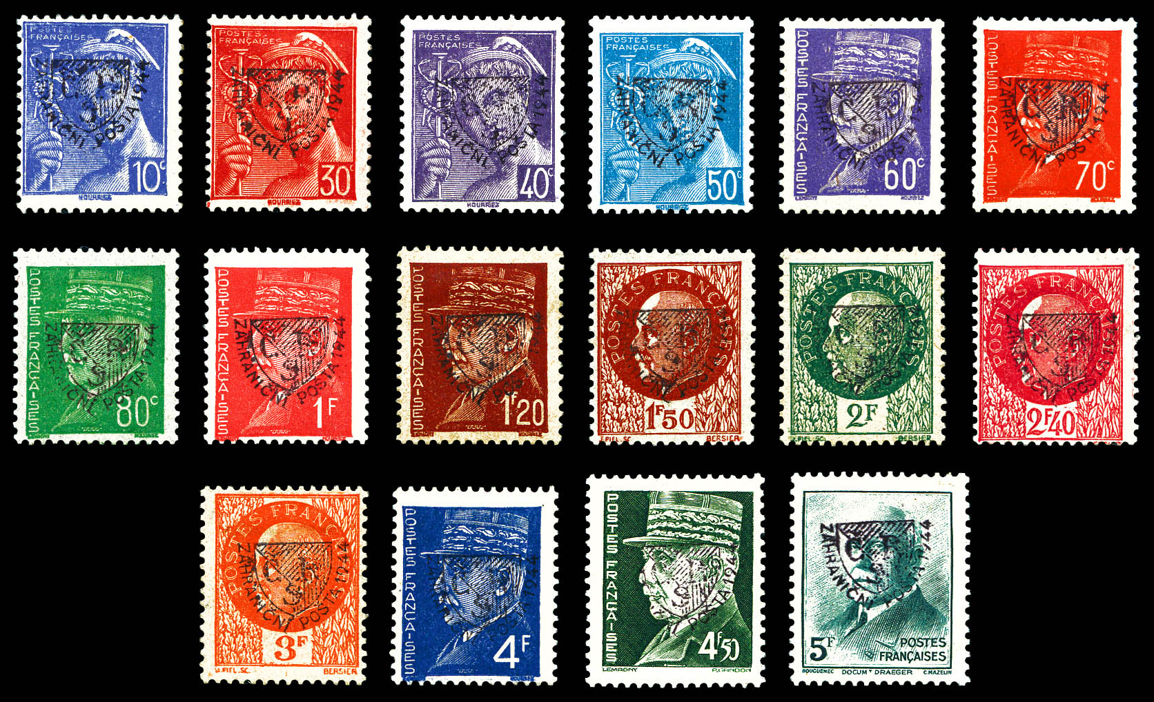 N°1/14, SOSPEL: n°1, 4, 6 à 14, les 11 valeurs SUP (certificat) Qualité: ** Cote: 768 euros (Image)