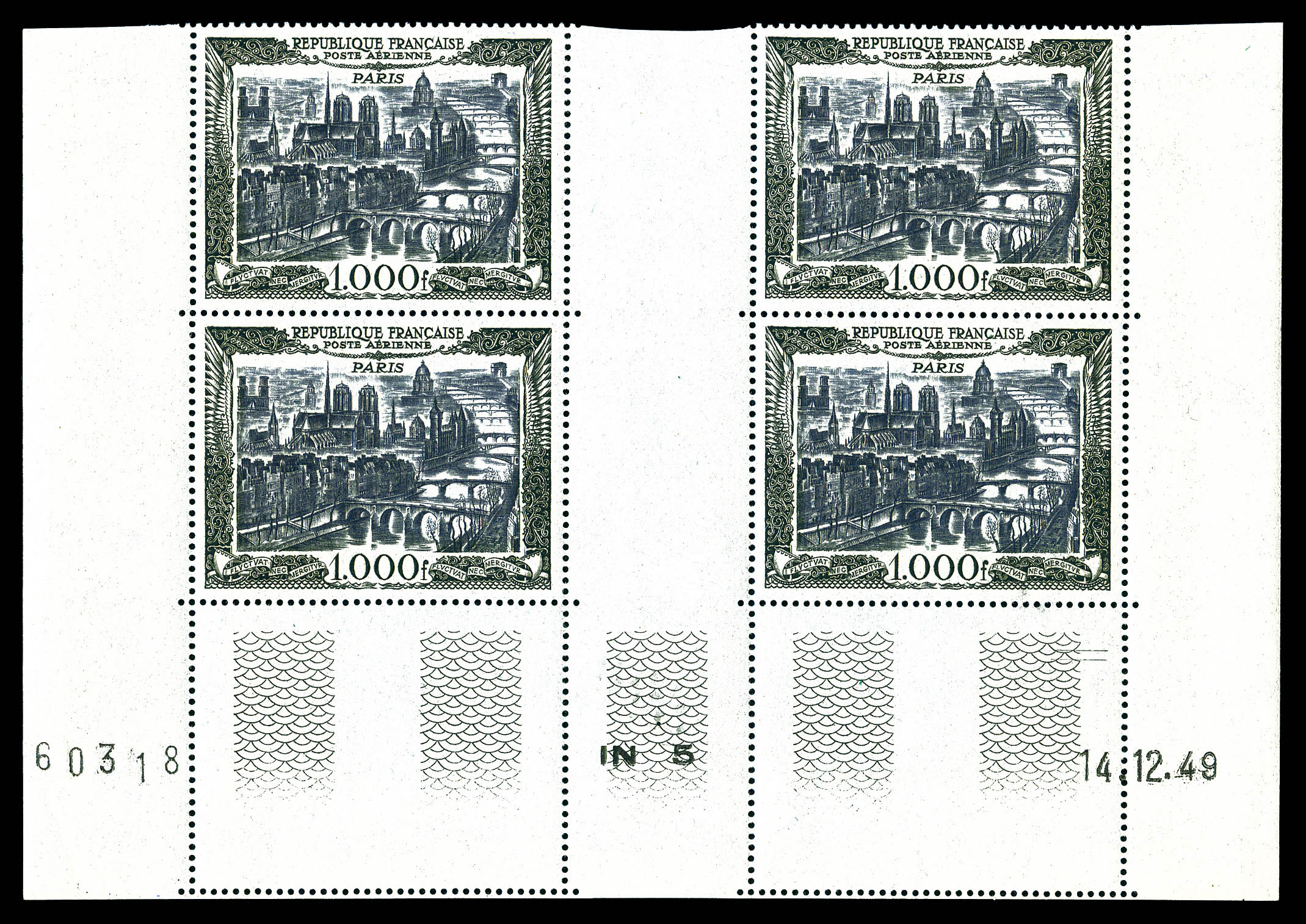 2064 nh imageN°29, 1000F Paris en bloc de quatre cdf daté du 14.12.49. TB Qualité: ** Cote: 900 euros (Image)
